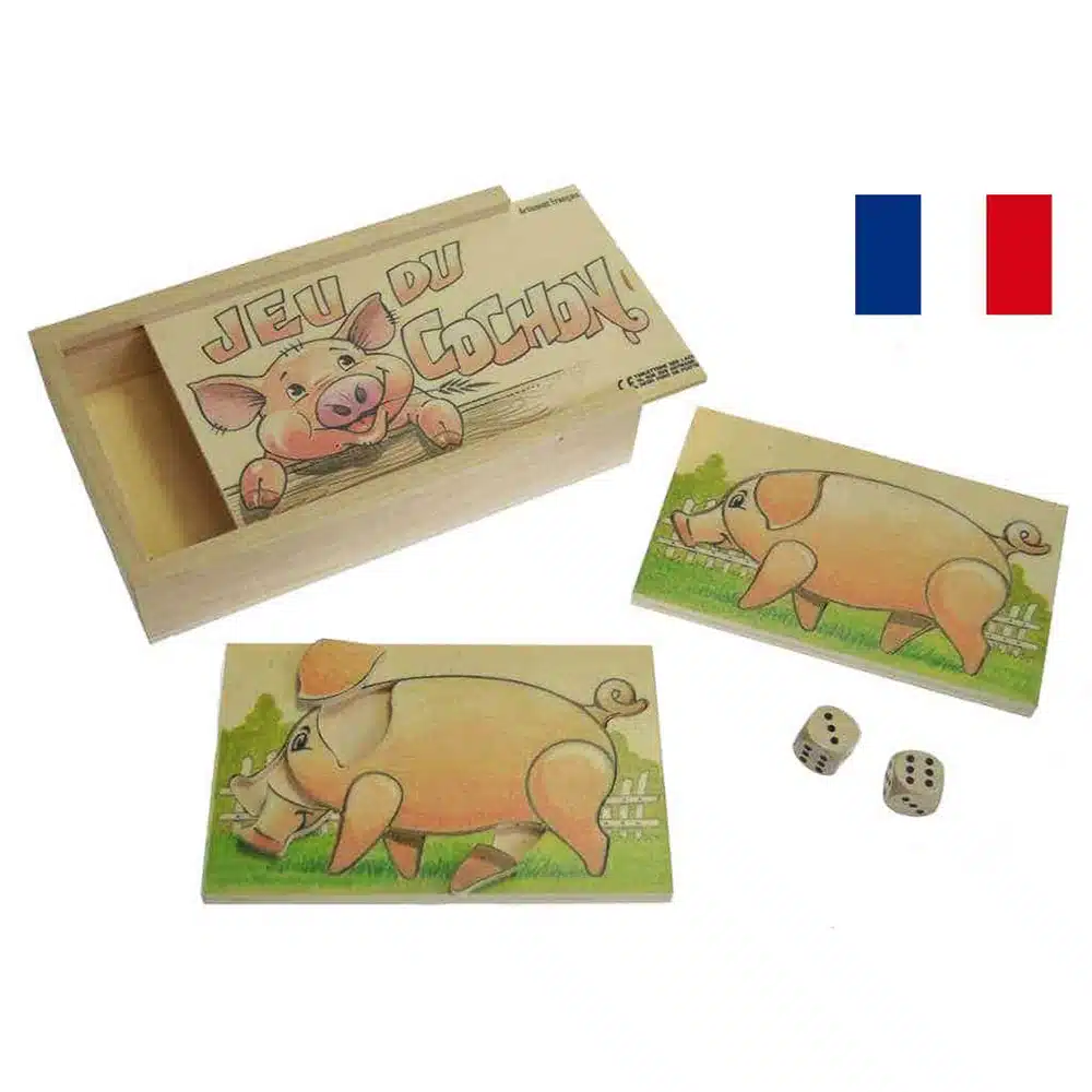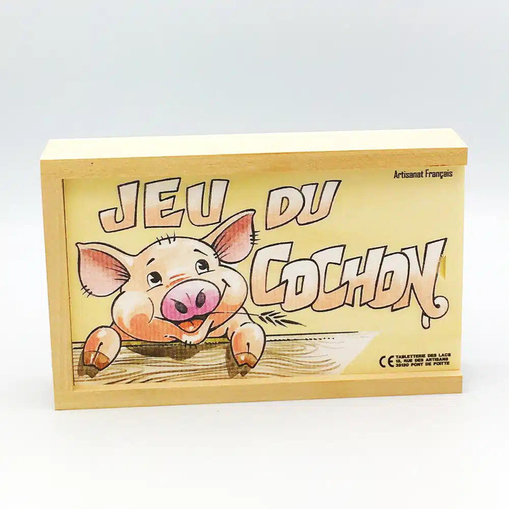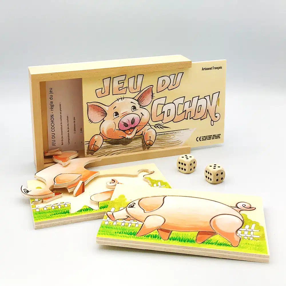 Jeu du cochon en bois fabriqué par nos artisans du Jura en France. À partir de 3 ans.