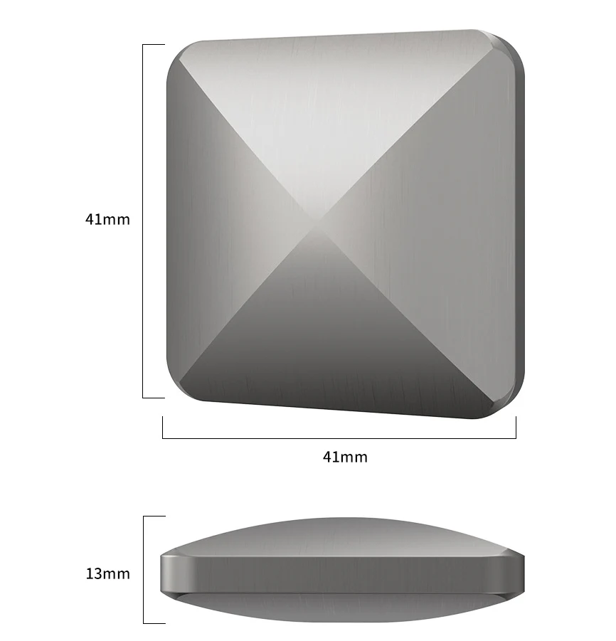 C’est un objet en forme de quadrilatère en acier inoxydable et alliage d’aluminium de 115 g.