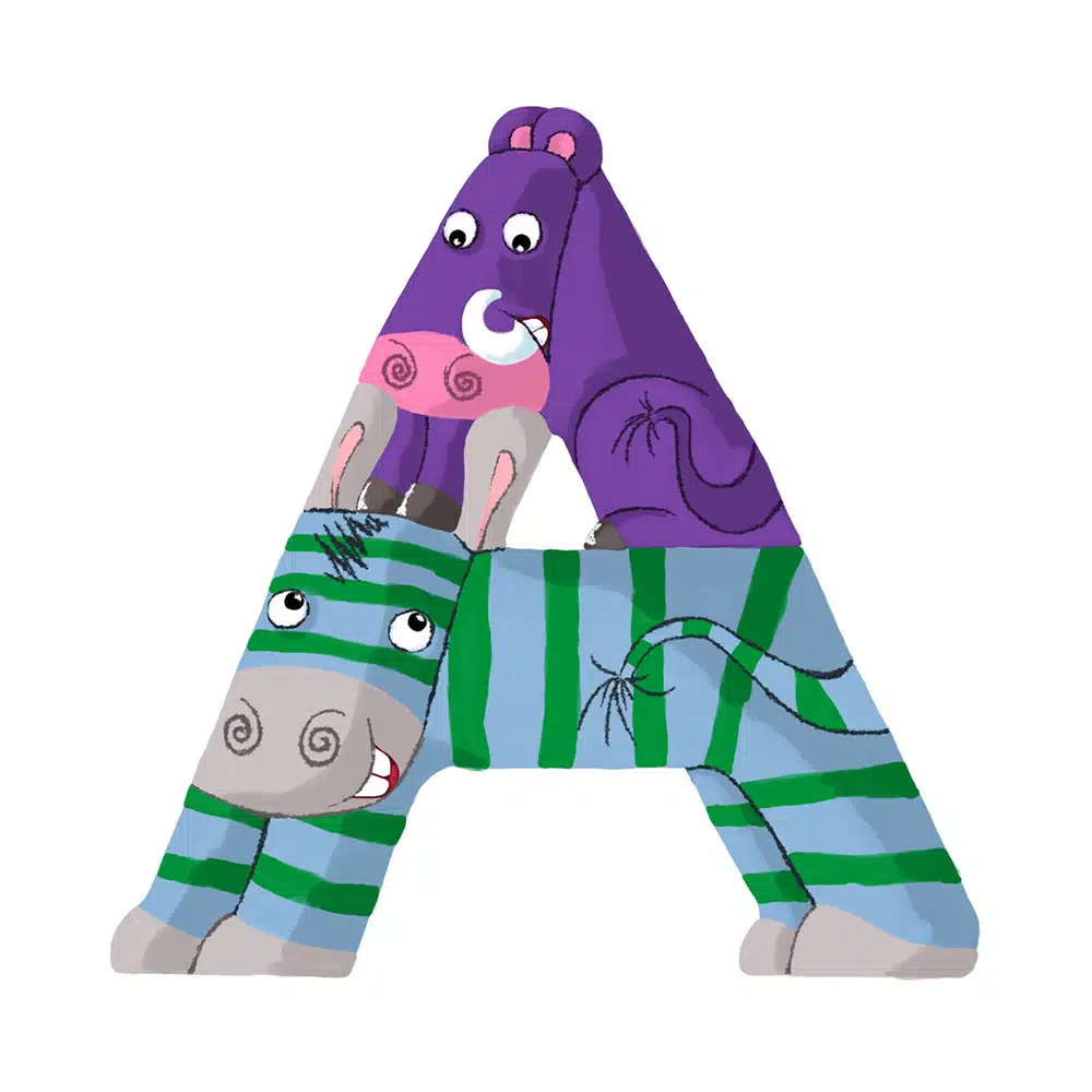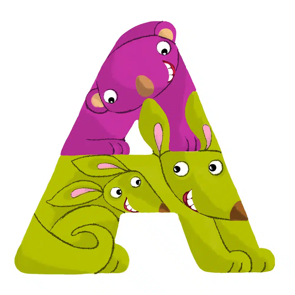 Lettre en bois – A en forme d’animaux rigolos, pour composer votre prénom ! Fabriquée par nos artisans du Jura en France.