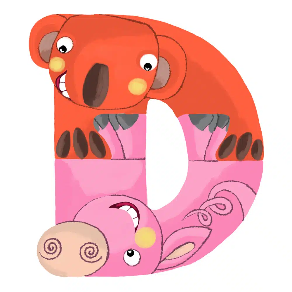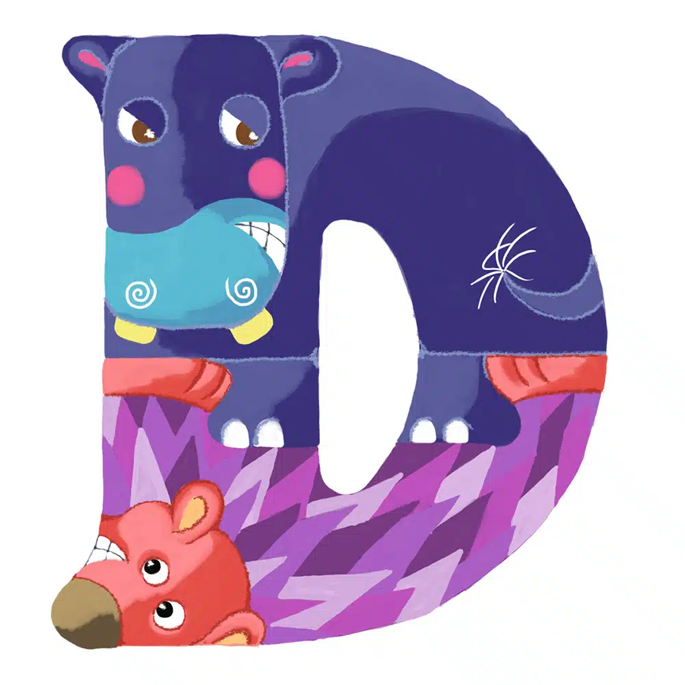 Lettre en bois – D en forme d’animaux rigolos, pour composer votre prénom ! Fabriquée par nos artisans du Jura en France.