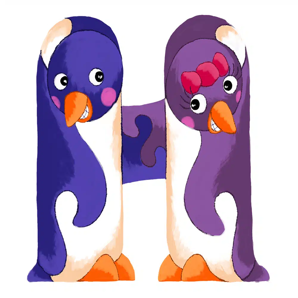 Lettre en bois – H en forme d’animaux rigolos, pour composer votre prénom ! Fabriquée par nos artisans du Jura en France.