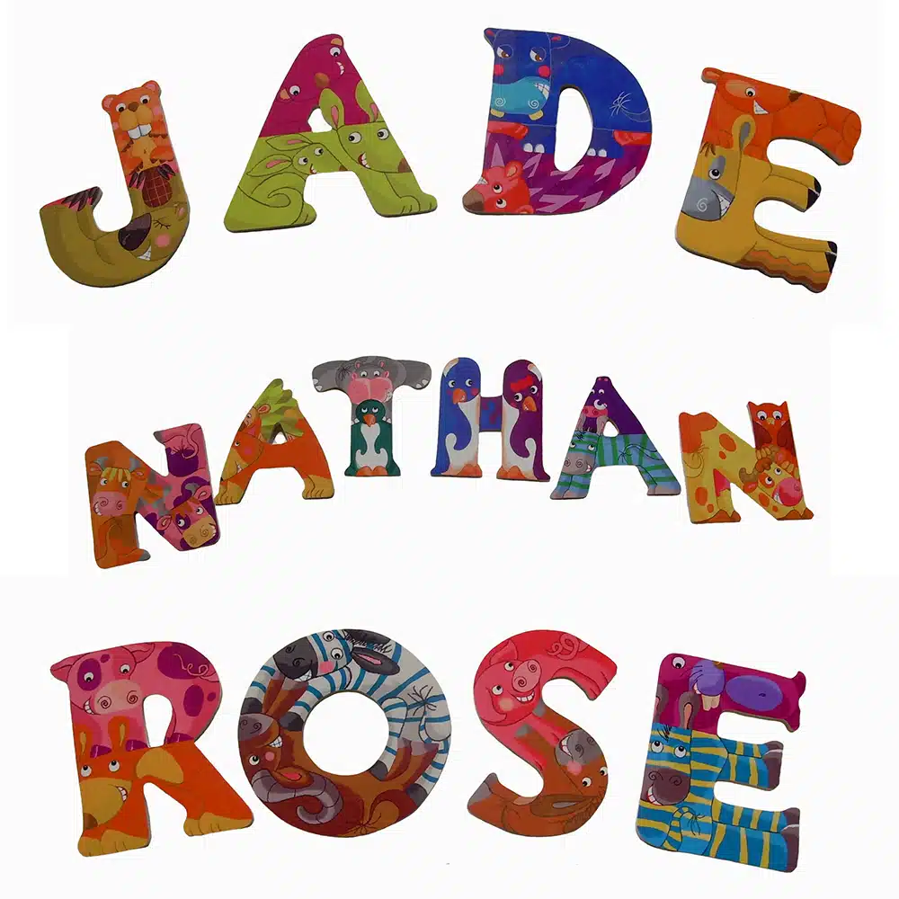 Composez votre prénom avec ces lettres en bois décorées fabrication française. Une super idée de cadeau de naissance personnalisé, original, coloré, amusant.