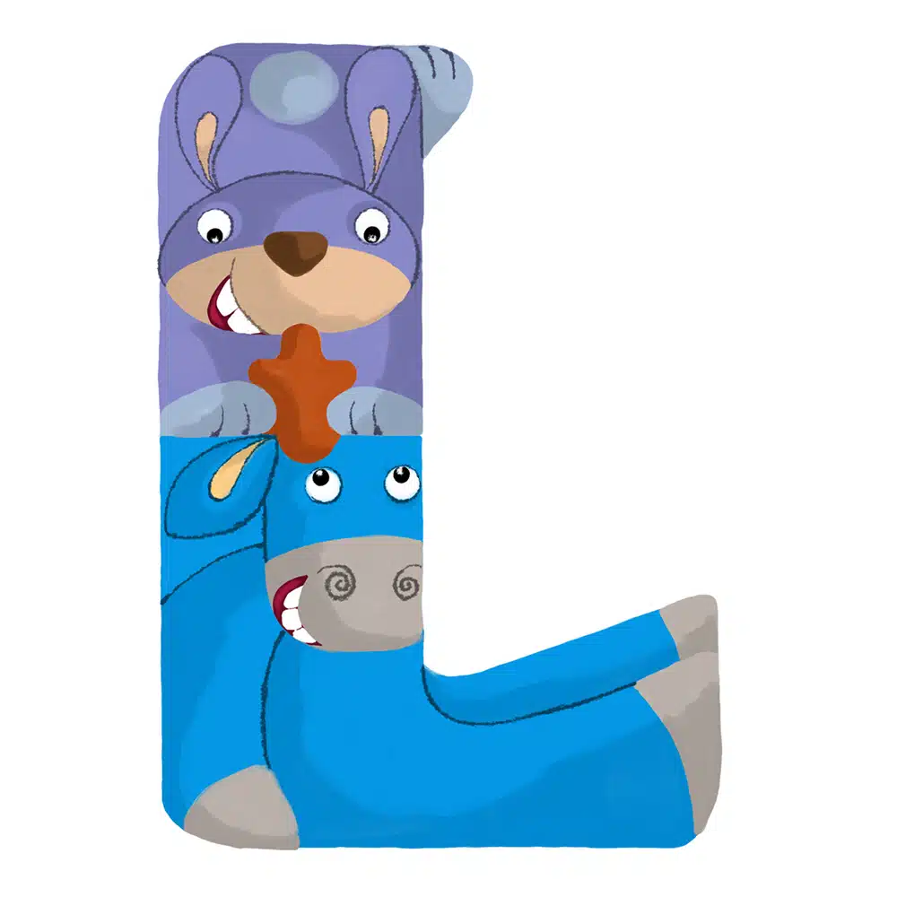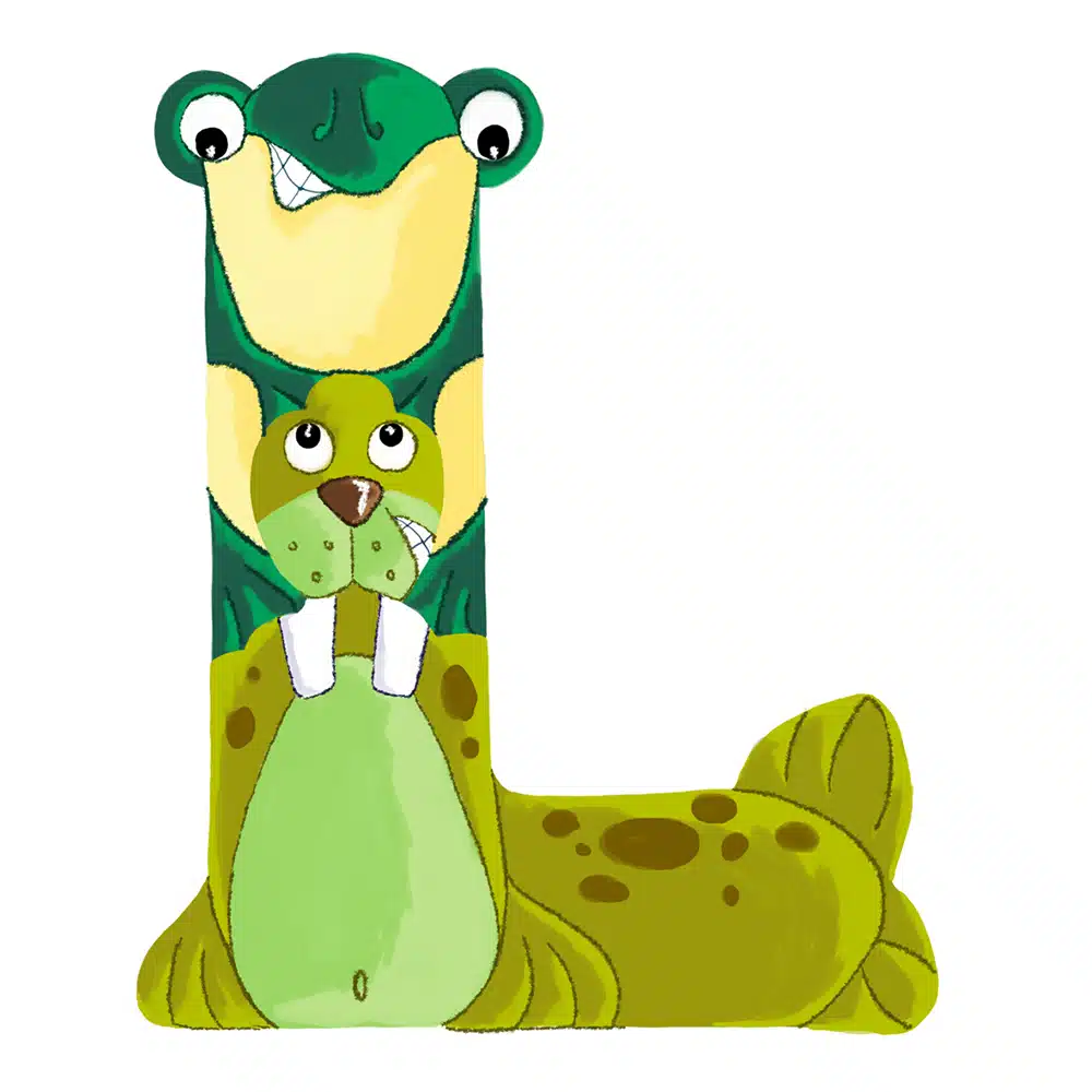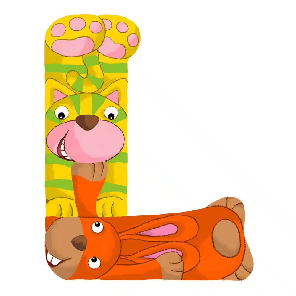Lettre en bois – L en forme d’animaux rigolos, pour composer votre prénom ! Fabriquée par nos artisans du Jura en France.