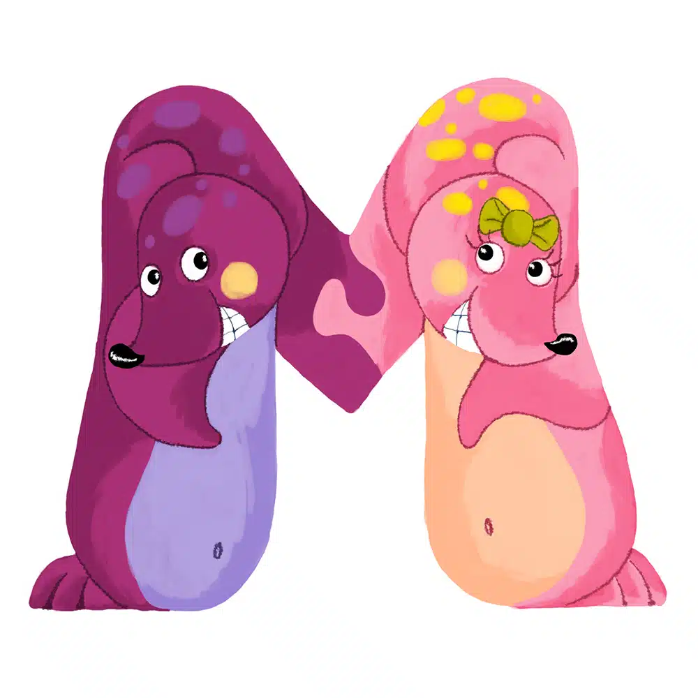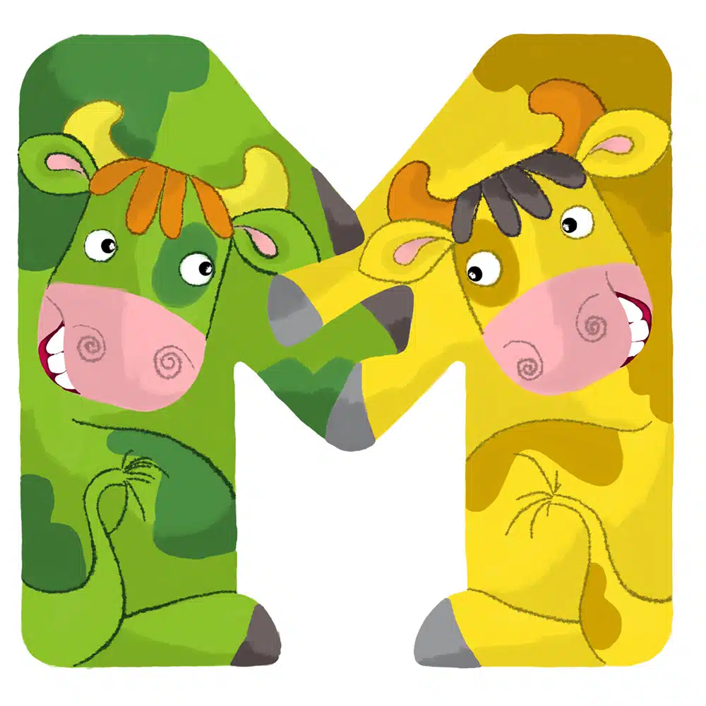 Lettre en bois – M en forme d’animaux rigolos, pour composer votre prénom ! Fabriquée par nos artisans du Jura en France.