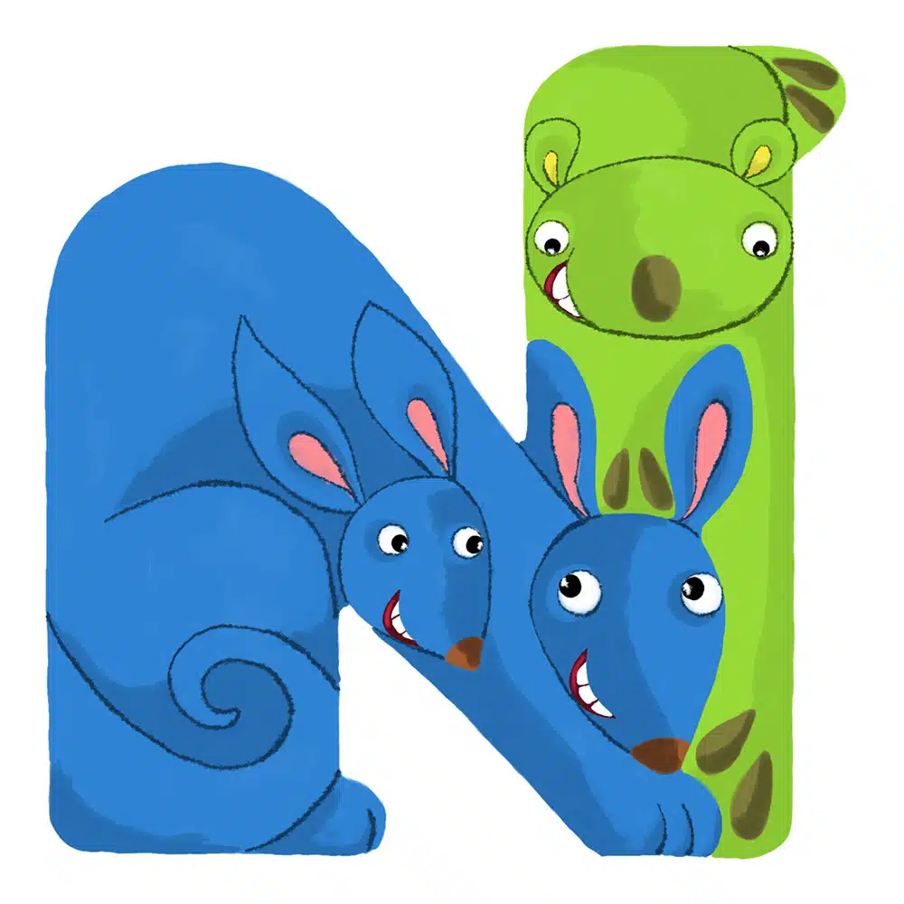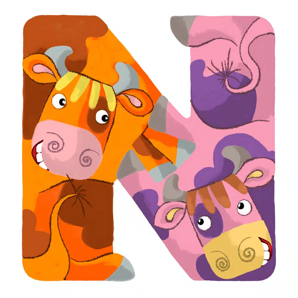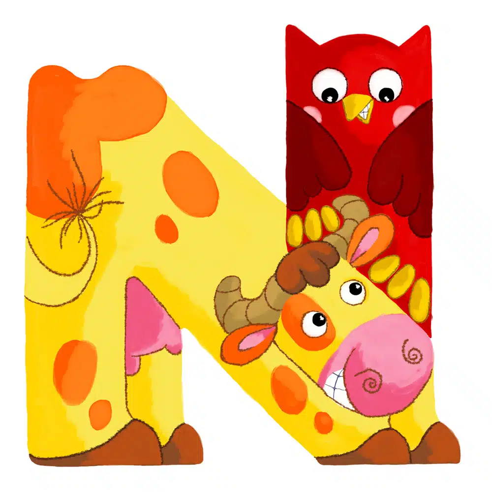 Lettre en bois – N en forme d’animaux rigolos, pour composer votre prénom ! Fabriquée par nos artisans du Jura en France.