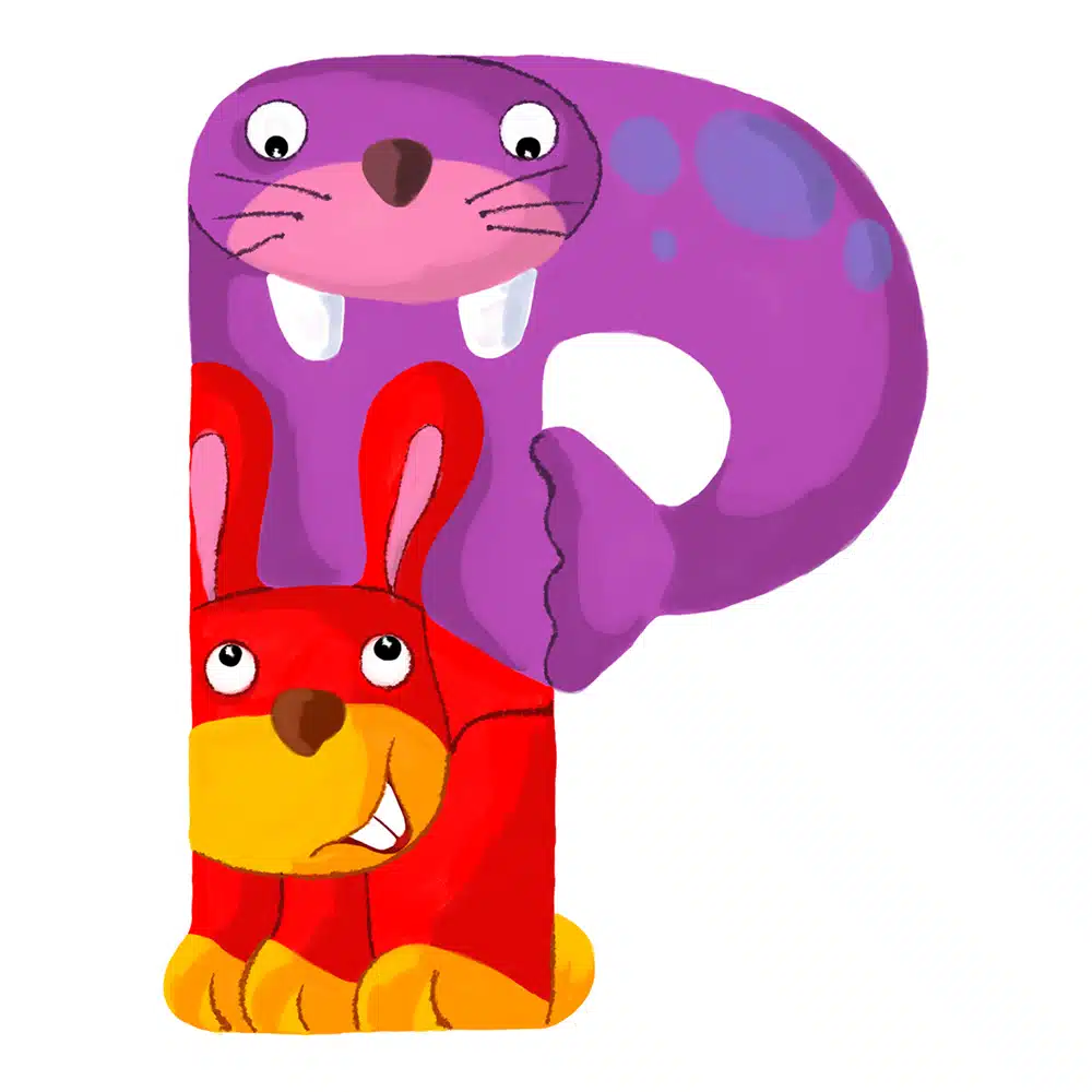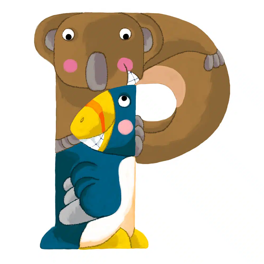 Lettre en bois – P en forme d’animaux rigolos, pour composer votre prénom ! Fabriquée par nos artisans du Jura en France.