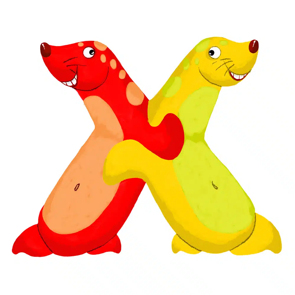 Lettre en bois – X en forme d’animaux rigolos, pour composer votre prénom ! Fabriquée par nos artisans du Jura en France.