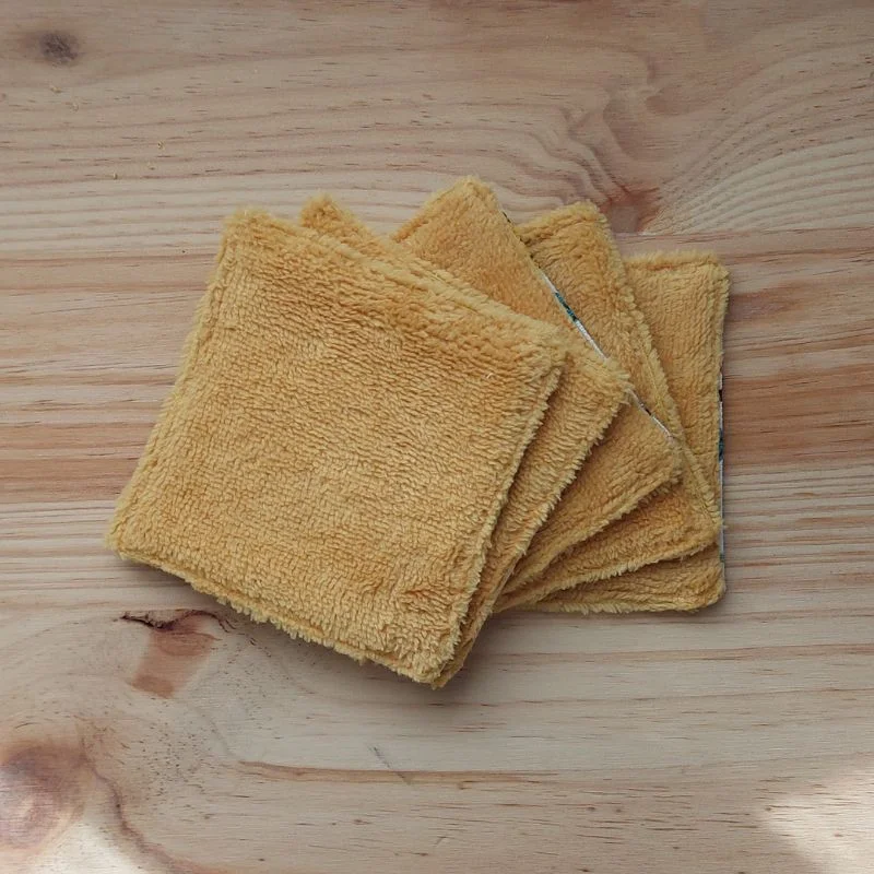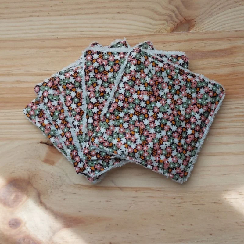 Adoptez ces lingettes réutilisables, confectionnées à la main avec des tissus certifiés Oeko-Tex, pour un quotidien plus doux et responsable. Lot de 5 lingettes. Choisissez la texture qui vous ressemble : Éponge coton pour un démaquillage efficace et tonique Éponge bambou pour une douceur incomparable, parfaite pour les peaux sensibles ou la toilette de bébé Une alternative pratique et jolie aux cotons jetables, pour un geste éco-responsable au quotidien.