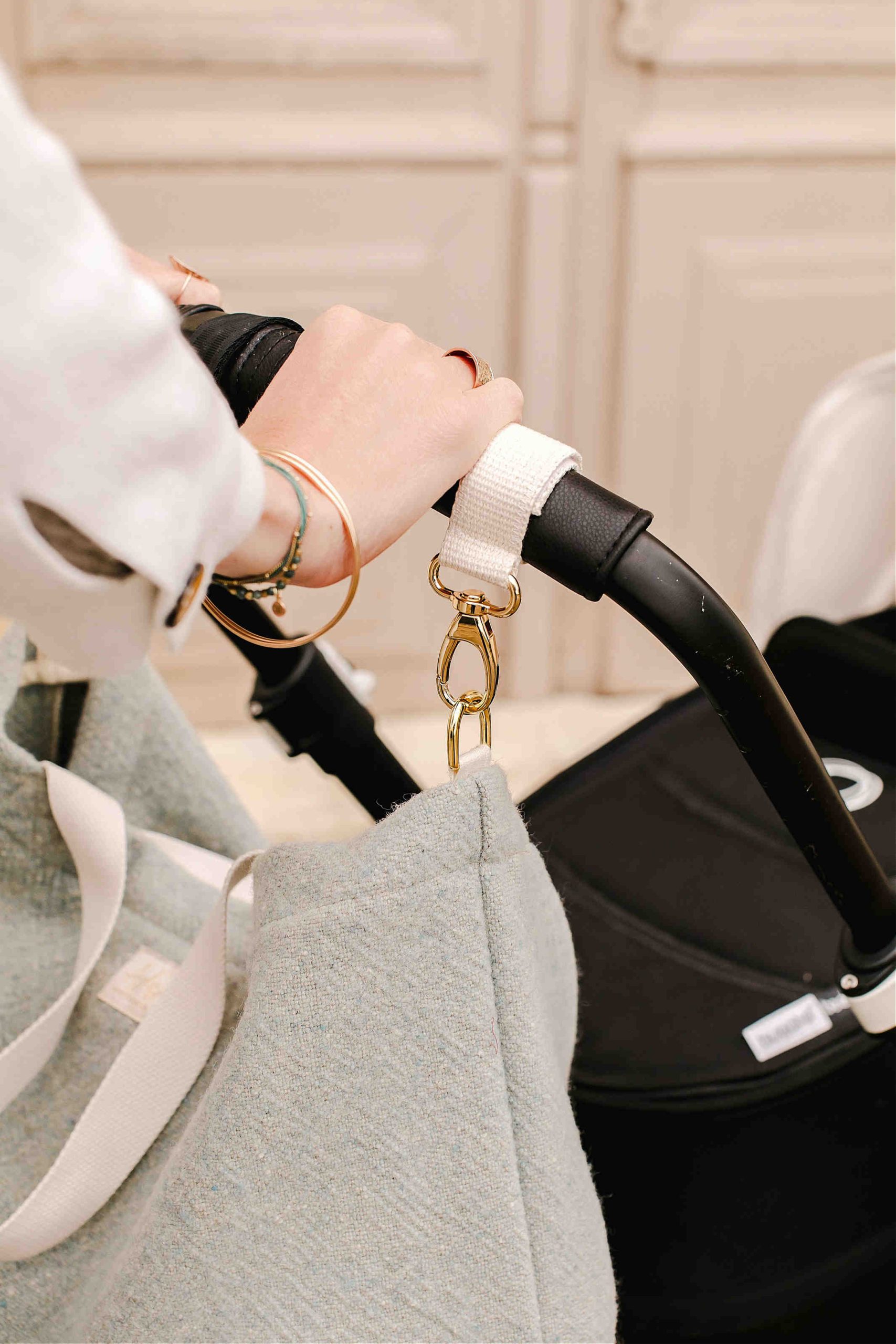 Lison, les attaches poussette coton sont adaptables à toutes les poussettes grâce à leur velcro. Elles iront parfaitement avec les cabas Anna et Apolline.