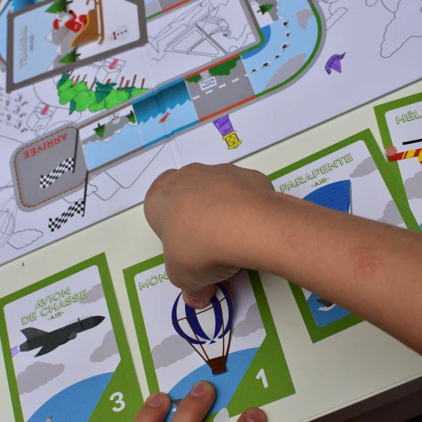 Découvrez ce jeu de plateau original à personnaliser et partez pour une course folle dans les airs, sur la neige, sur l’eau et sur la route !