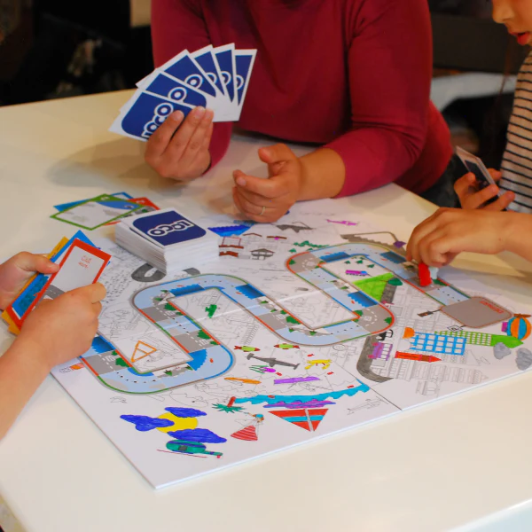Ce jeu associe activités manuelles (plateau à colorier, cartes jokers à fabriquer, autocollants à coller sur les cartes) et jeu de plateau aux règles simples et évolutives.