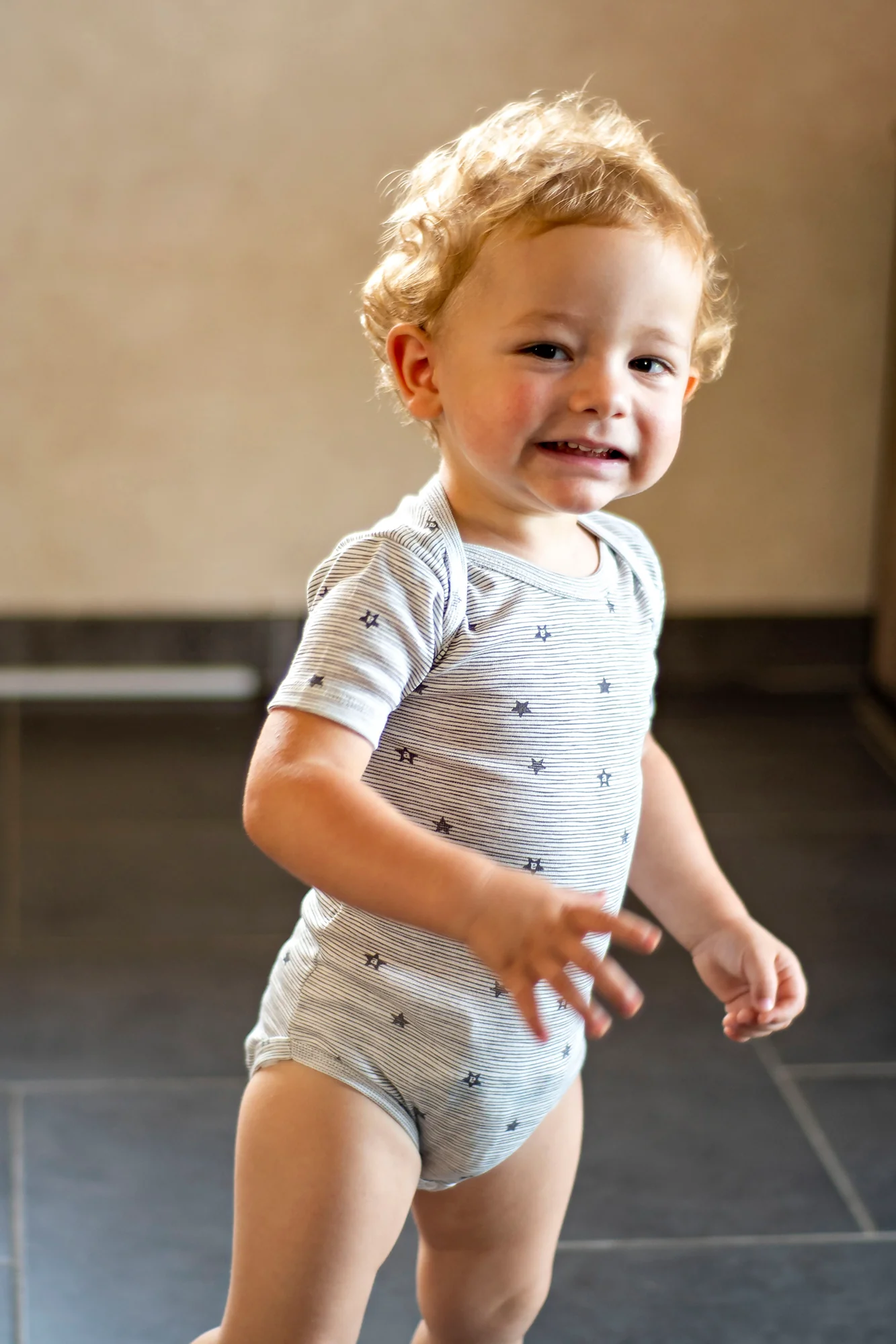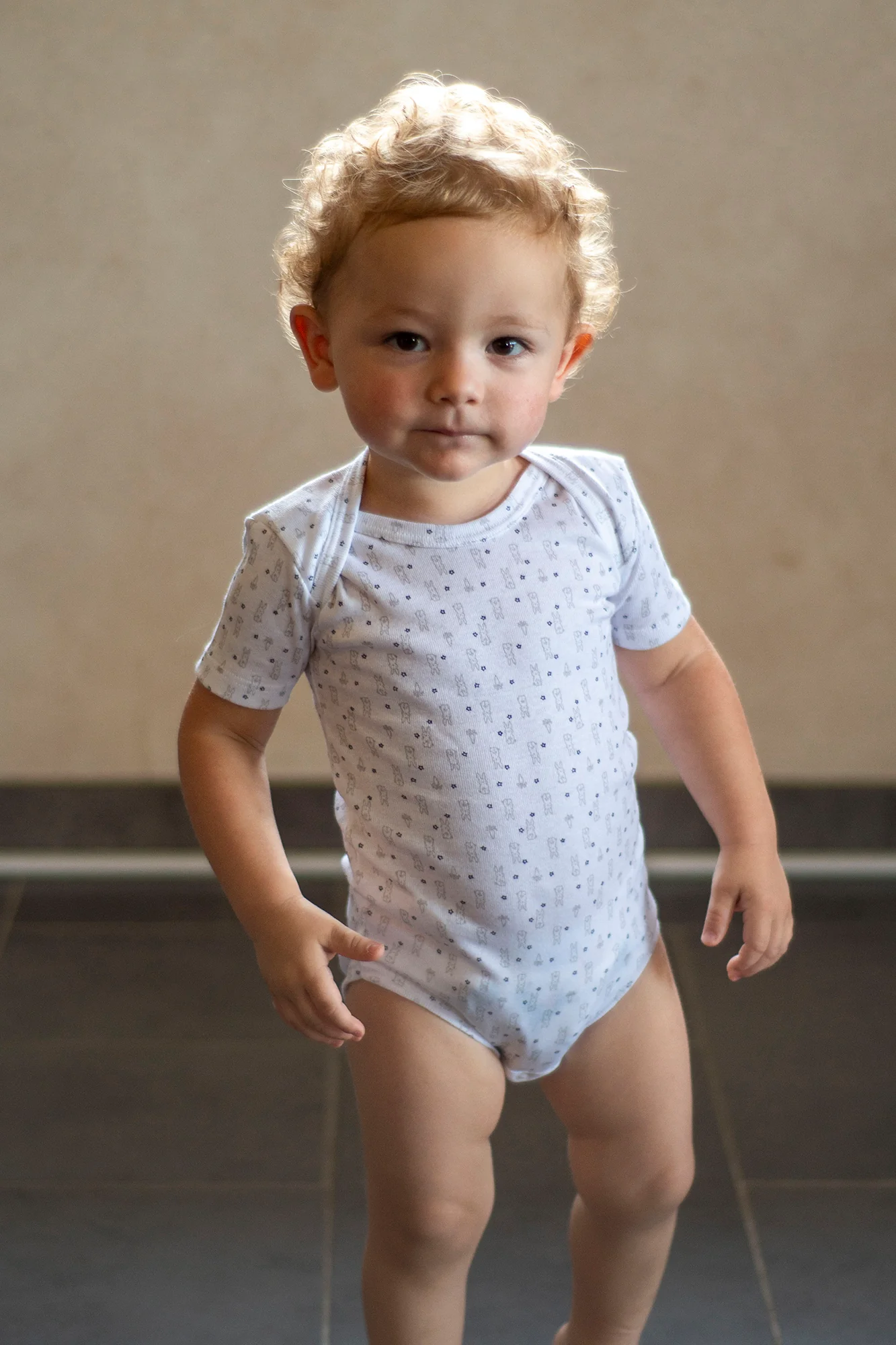Manches courtes Boutons pressions à l’entrejambe Produit éco-conçu : tissus provenant d’Europe, production en série limitée Composition : 100 % coton
