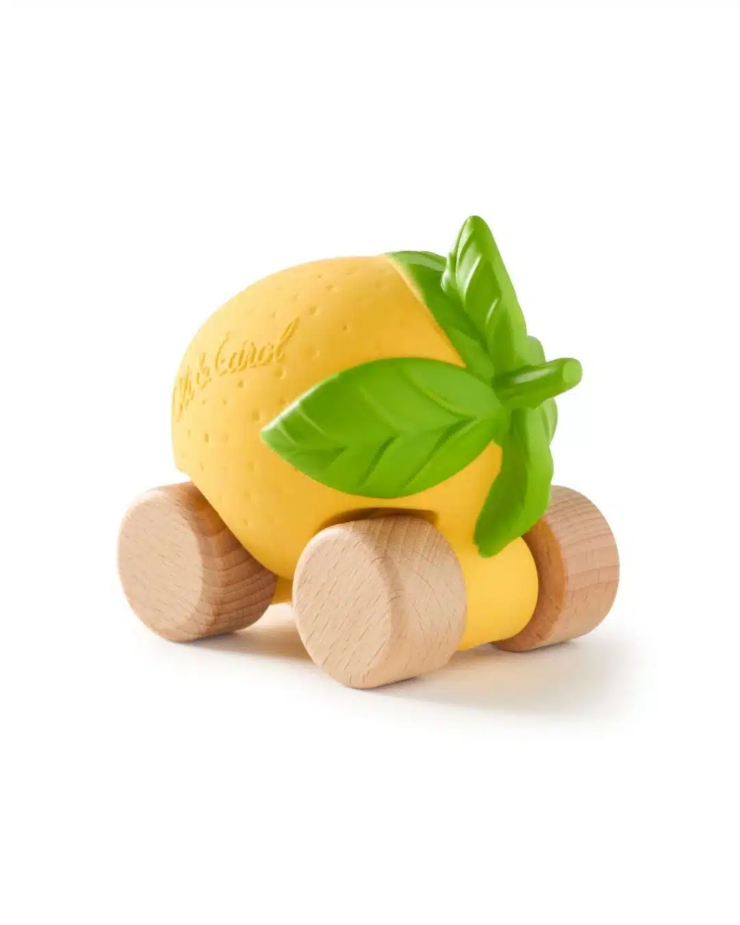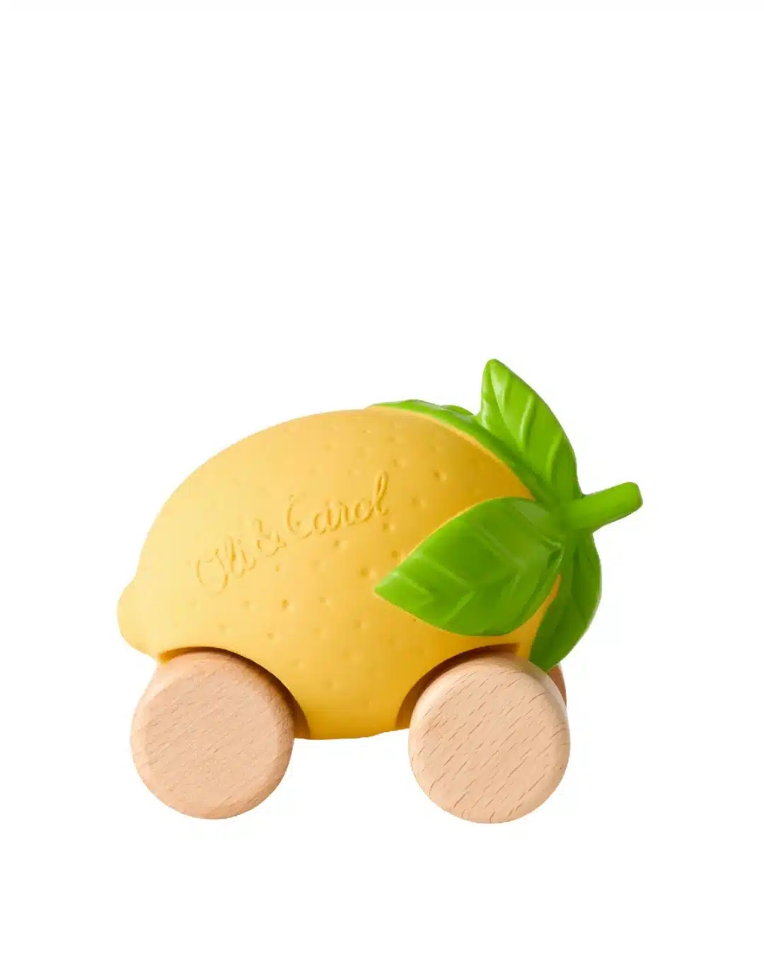 Lou la voiture citron de Oli & Carol, jouet pour bébé en caoutchouc 100% naturel.
