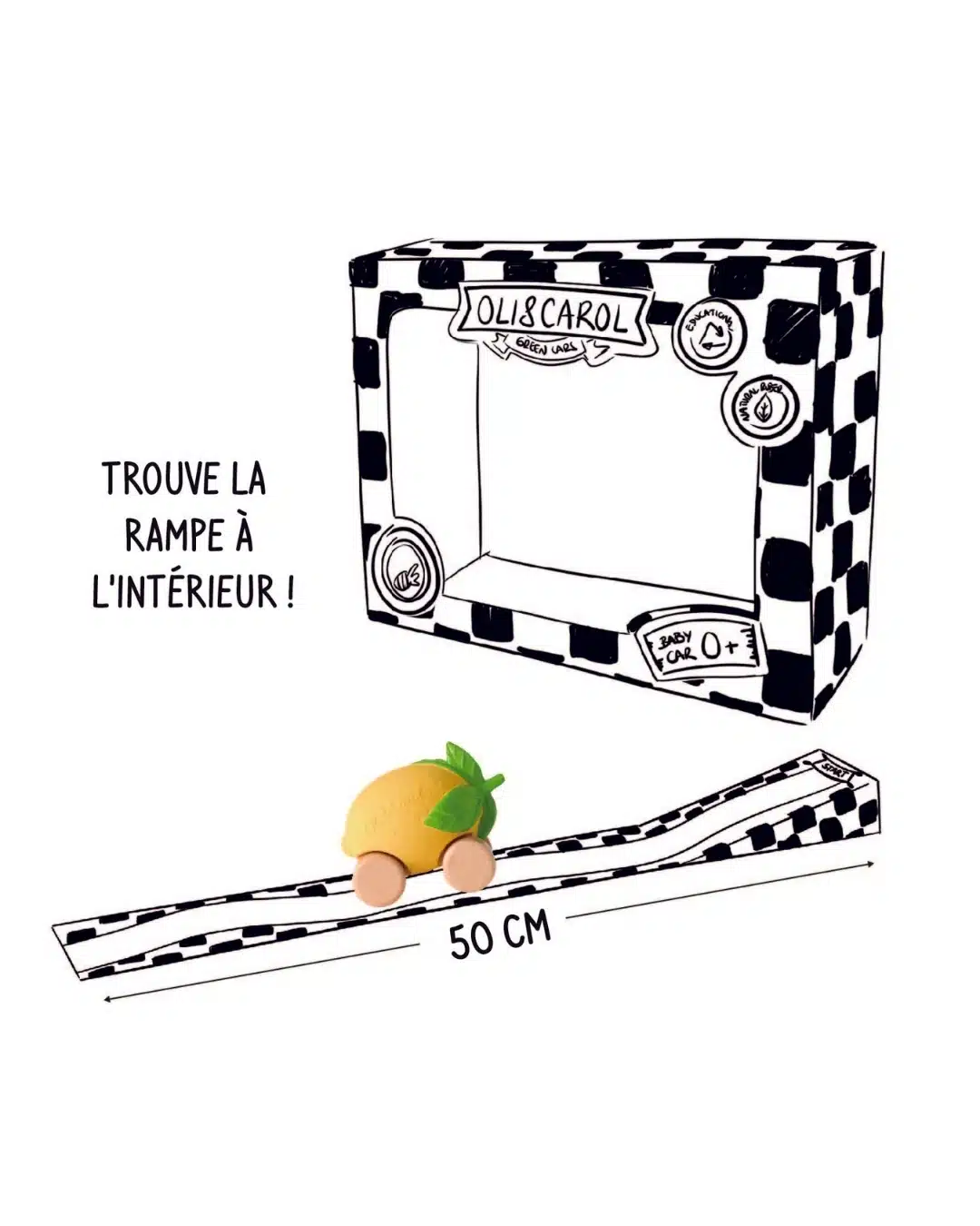 Nous vous présentons Lou, le jouet de voiture durable pour bébés ! Avec un design inspiré d’un citron, fabriqué à la main avec du caoutchouc naturel et du bois FSC. Cette voiture pour bébés favorise le jeu interactif, le développement cognitif et les compétences sociales. Son emballage comprend une rampe escamotable à l’intérieur, le rendant réutilisable et amusant !