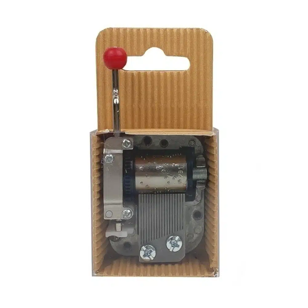 Mécanisme vendu seul ou fixé dans une boîte en bois qui apporte une meilleure résonance, possibilité d’inter-changer la mélodie grâce à 3 petites vis. Le couvercle peut facilement pivoter pour laisser apparaître le mécanisme.