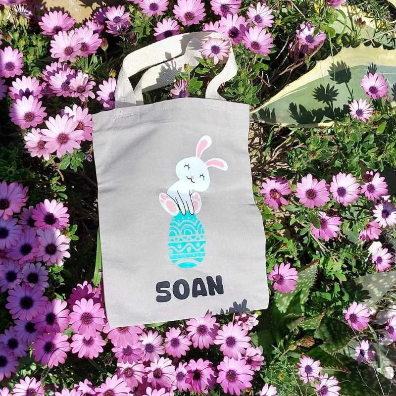 Craquez pour ce joli mini tote bag de Pâques, confectionné à la main avec soin. Parfait pour les petites mains, ce sac accompagnera les enfants lors de leur chasse aux œufs ou pour transporter leurs trésors printaniers. En coton, léger et facile à transporter, il est orné d’un petit lapin de Pâques… Ce mini tote bag peut être personnalisé avec le prénom de votre enfant pour un cadeau encore plus spécial.