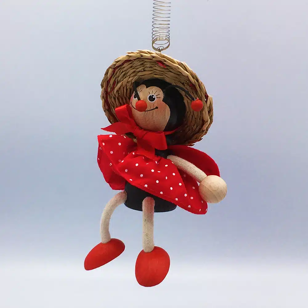 Figurine animale en bois montée sur ressort, à suspendre, de fabrication Allemande.