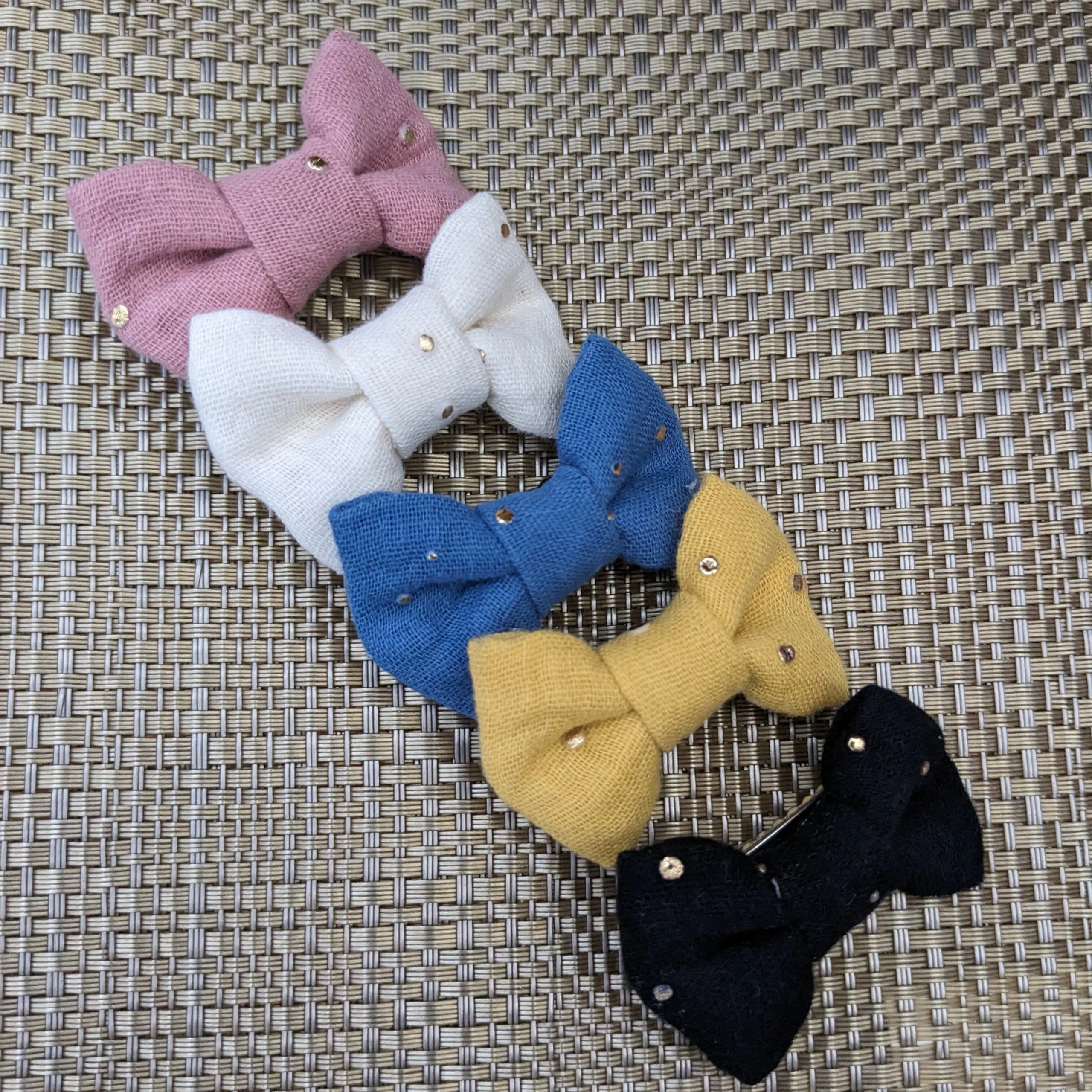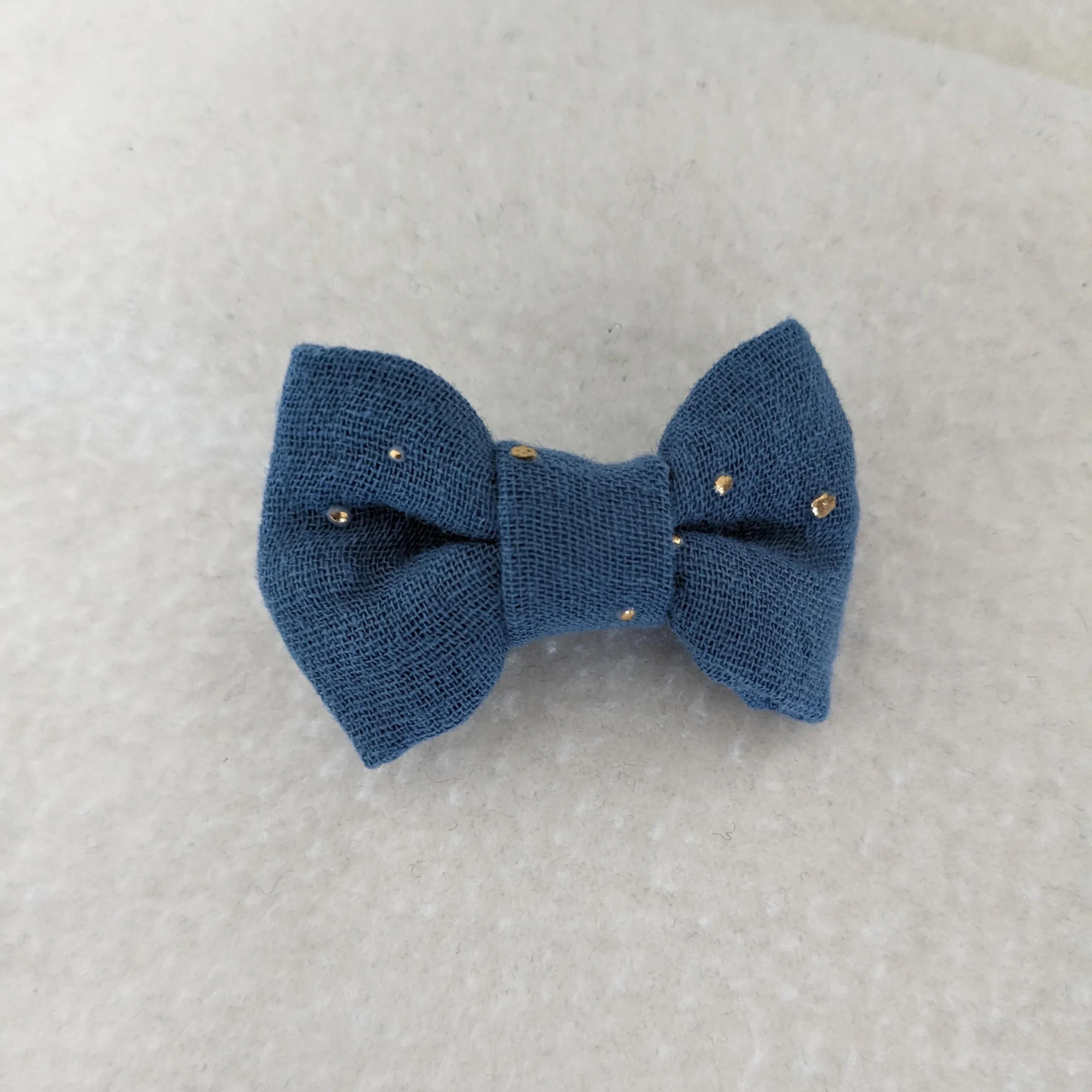 On craque pour ces jolis nœuds en double gaze de coton certifié Oeko-Tex. Disponibles en pince antiglisse de 2,8cm (adaptée dès les 1ers mois) ou en pince crocodile de 4cm. Taille du nœud : 5,5x4cm