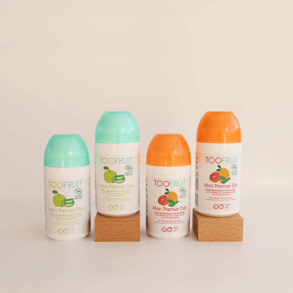 Mon Premier Déo pomme-aloe vera et Mon Premier Déo pamplemousse-menthe ont déjà conquis un grand nombre de parents et d’enfants ! TOOFRUIT a pensé à tous leurs adeptes en créant un pack exclusif de 4 déodorants roll-on pour environ 6 mois d’utilisation.