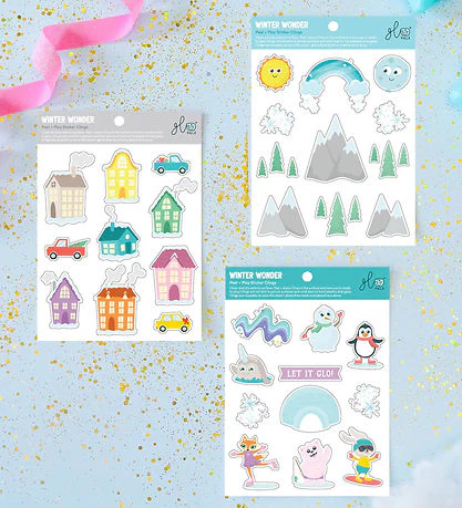 Pot sensoriel Funky Glo Pals avec lumières changeantes de couleur dans un coffret cadeau. Le bocal sensoriel a un design blanc et est livré avec deux paquets de confettis Fun Fillers (Winter Wonderland) et trois feuilles d’autocollants réutilisables.