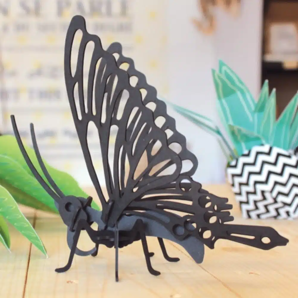 Maquette insecte papillon en carton noir, décoration originale à poser 100% fabrication française et éco-responsable de la marque Agent-Paper, à monter soi-même niveau facile.
