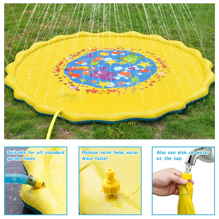 Ce tapis a une forme arrondie et de couleur unie mais peut être agrémenté de différents motifs amusants, des petits animaux ou encore de forme géométrique. C’est le jouet idéal à utiliser en période de haute chaleur pour occuper les enfants en toute sécurité tout en les rafraîchissant.