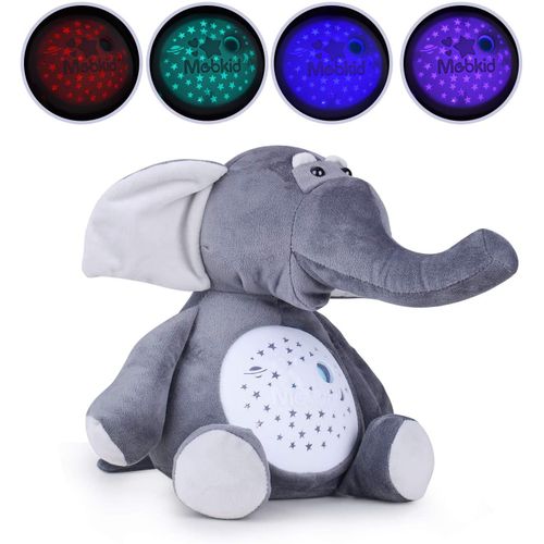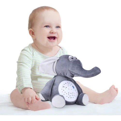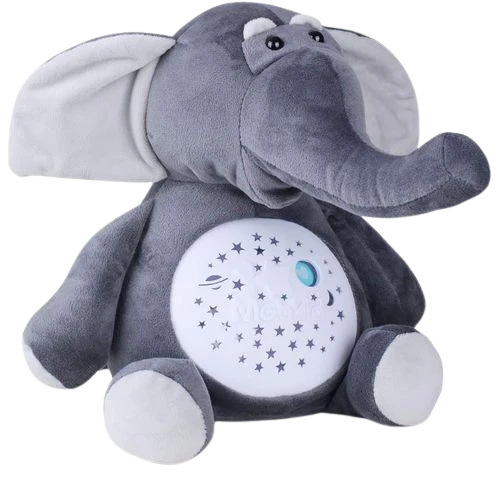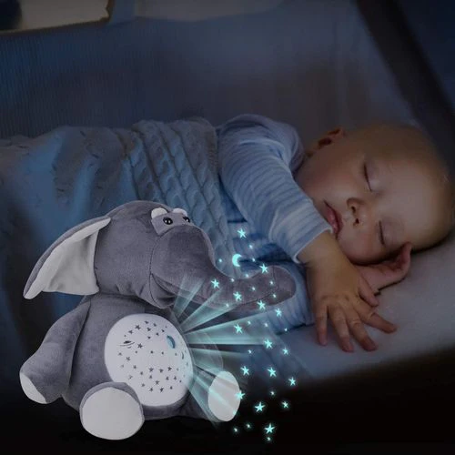 Imaginez : un éléphant brille doucement avec des étoiles, joue doucement des mélodies apaisantes et le bébé s’endort sous sa douce surveillance.