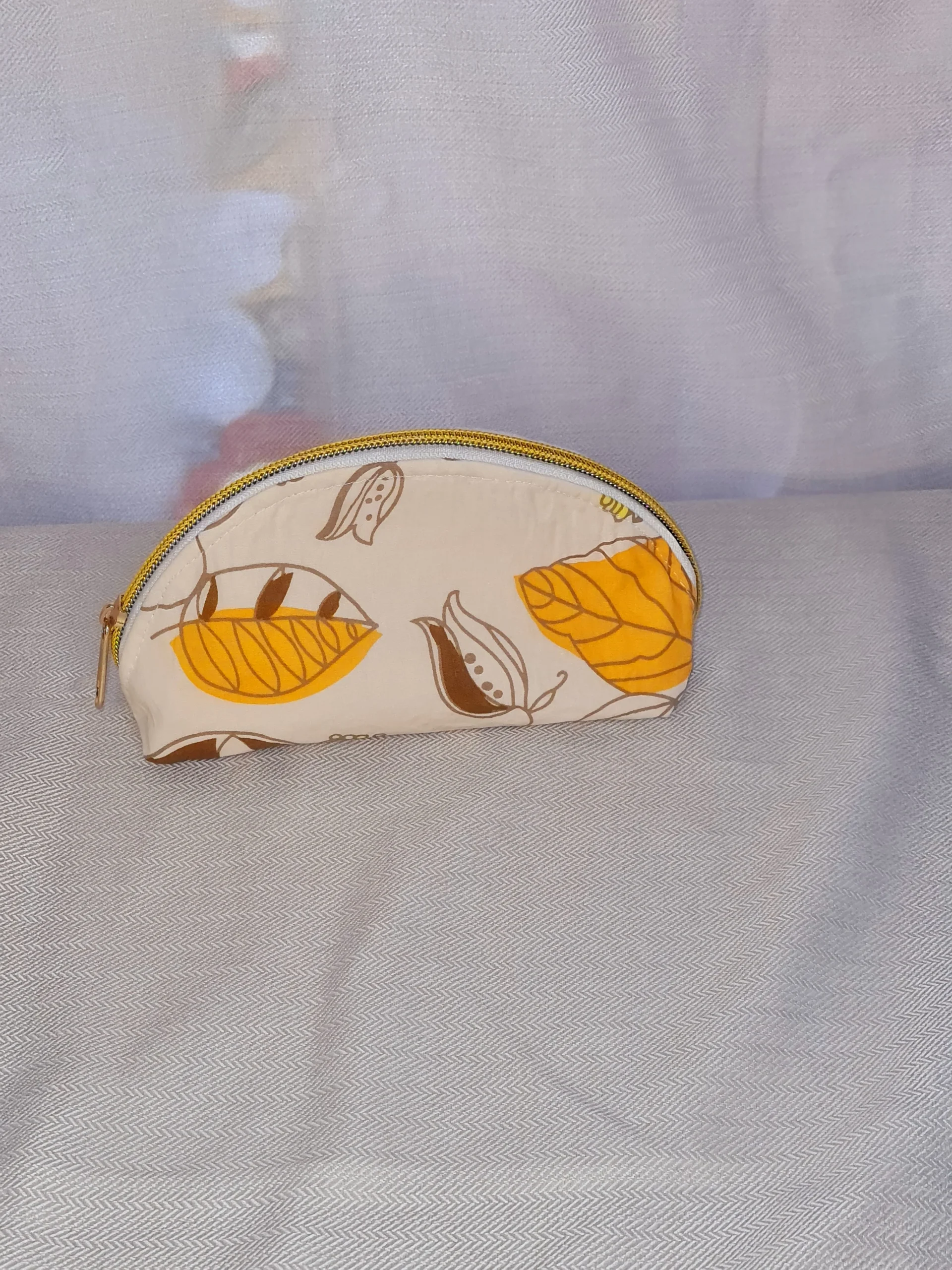 Cette petite trousse ovale a les dimensions parfaites pour être glissée dans un sac à main.Parfaite pour y ranger du maquillage, des médicaments, un necessaire de 1er secours…. Taille : 17cmX10cm Composition : Intérieur : 100% coton enduit extérieur : 100% coton