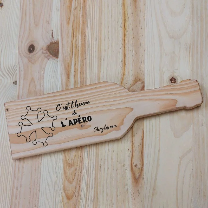 Découvrez la planche apéritive en forme de bouteille, une pièce unique et personnalisable qui ajoutera une touche d’élégance à vos moments conviviaux. Fabriquée en bois de qualité, elle est parfaite pour présenter vos fromages, charcuteries et autres délices. Grâce à la possibilité de personnalisation, vous pouvez y graver un nom, une date ou un message spécial, en faisant un cadeau idéal pour vos proches ou une addition chic à votre propre collection. Profitez de chaque apéritif avec style et originalité !