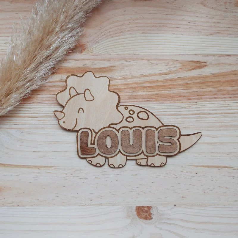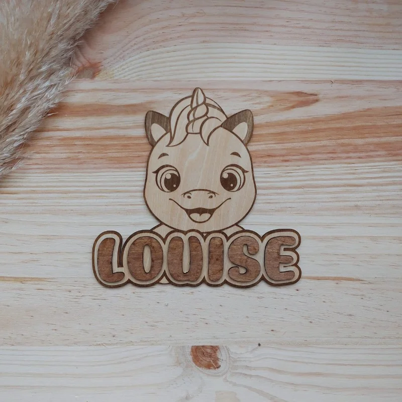 Découvrez ces magnifiques plaques de porte en bois pour enfant, disponibles avec des motifs adorables tels que licorne, panda, voiture, dinosaure, tortue et ourson. Chaque plaque est soigneusement fabriquée en bois de qualité et personnalisée avec le prénom de votre enfant en lettres en relief. Ces plaques uniques apportent une touche personnelle et décorative à la chambre de votre enfant, tout en reflétant ses goûts et sa personnalité. Parfaites comme cadeau de naissance, d’anniversaire ou pour toute autre occasion spéciale, ces plaques de porte en bois sont un choix élégant et durable pour embellir l’espace de votre petit trésor.