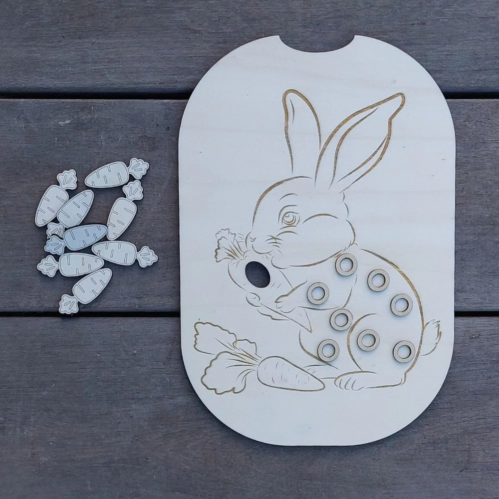 Transformez vos bacs Trofast en espaces de jeu ludiques et créatifs avec mes plaques en bois sur le thème des animaux! Chaque plaque est conçue pour stimuler l’imagination des enfants tout en leur permettant de travailler leur motricité fine. Plaque Mouton : Ses trous permettent aux enfants de créer sa laine en y insérant des cotons-tiges, offrant une activité ludique et tactile. Plaque Poule : Avec ses trous pour y placer des plumes et un trou au niveau du bec pour y glisser un ver de terre, cette plaque amusera les enfants tout en éveillant leur créativité Plaque Lapin :…