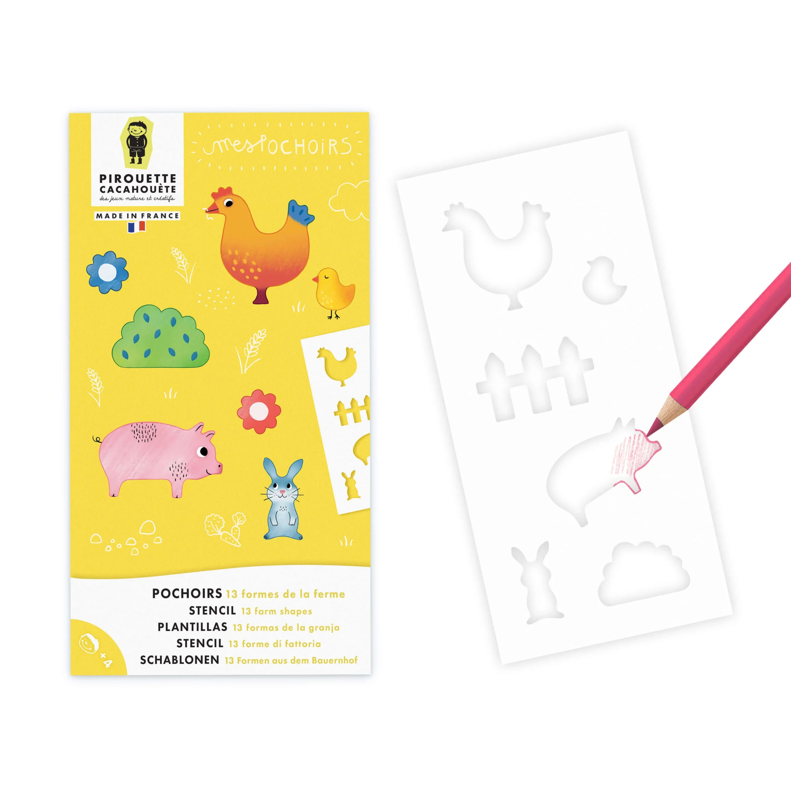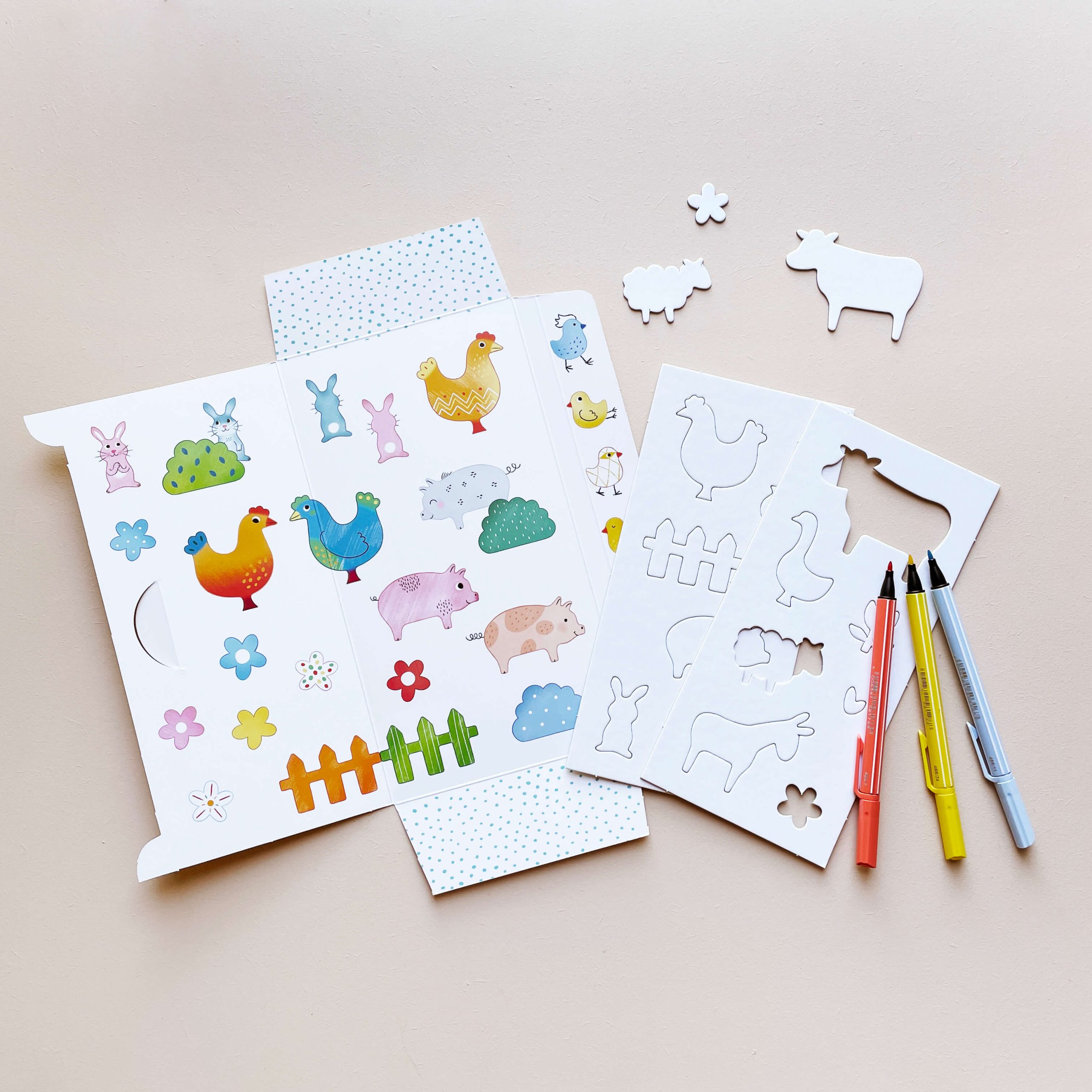 Un set de pochoirs pour s’amuser à dessiner les animaux de la ferme.