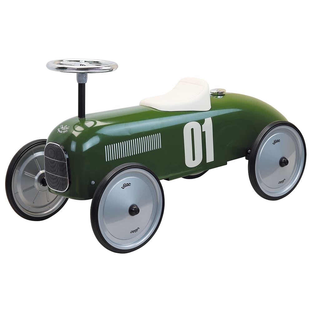 Ce porteur voiture de course en métal rétro fera de vos enfants de vrais pilotes de course !