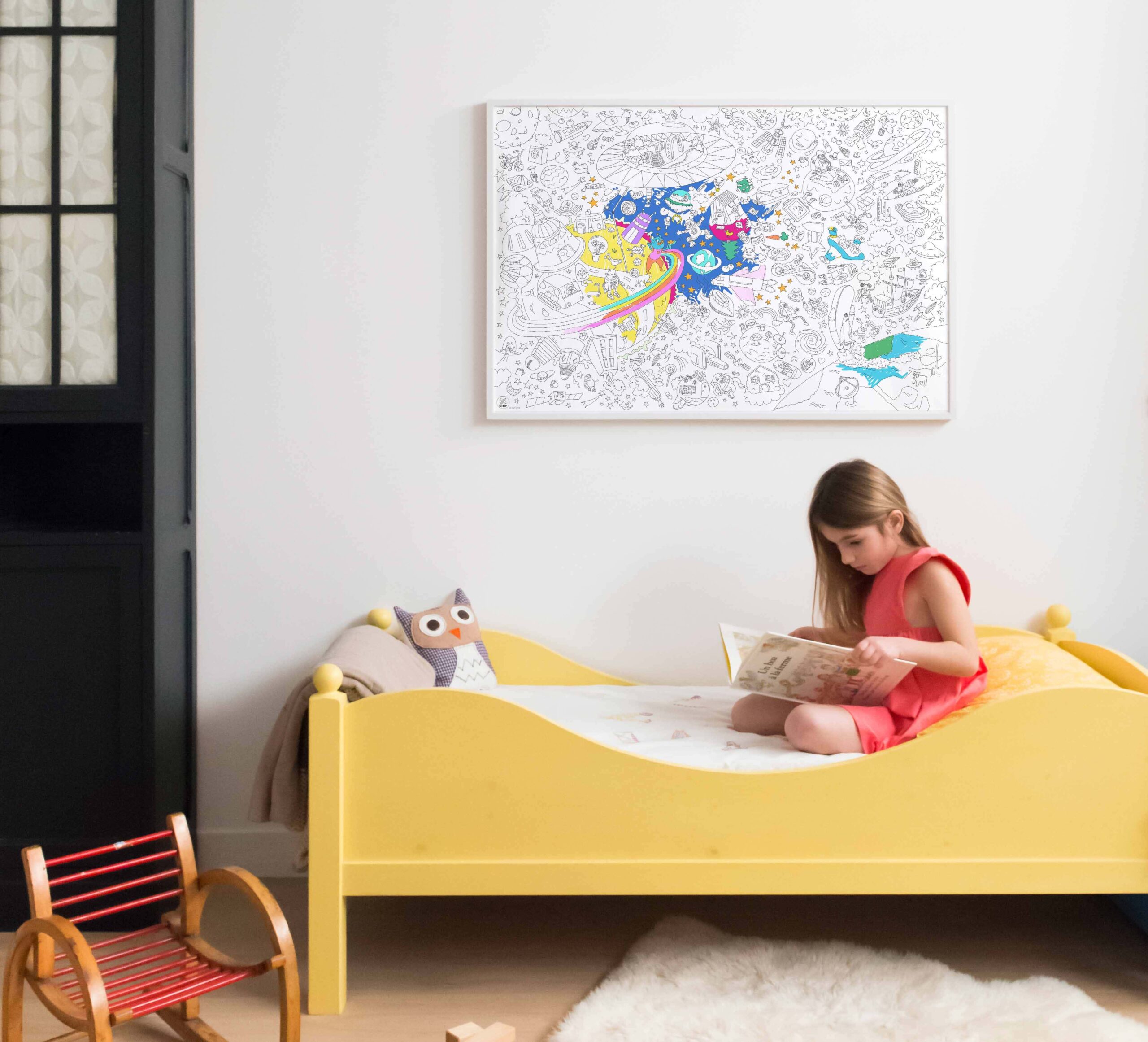L’espace vu de manière ludique et fun? C’est ce que vous propose ce grand coloriage à partager pour toutes les occasions! Un grand poster aux illustrations pleines d’humour est un véritable espace artistique pour des enfants à l’imagination débordante! Conçu et fabriqué en France !