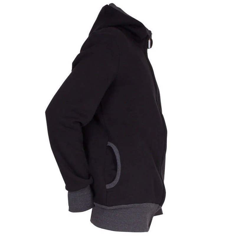 Performance : c’est un pull kangourou à capuche doté d’une fermeture éclair et d’un certains nombres de poches très pratique pour le rangement de certains accessoires. La grande poche avant est cousue de façon amovible pour transporter le bébé en toute sécurité.