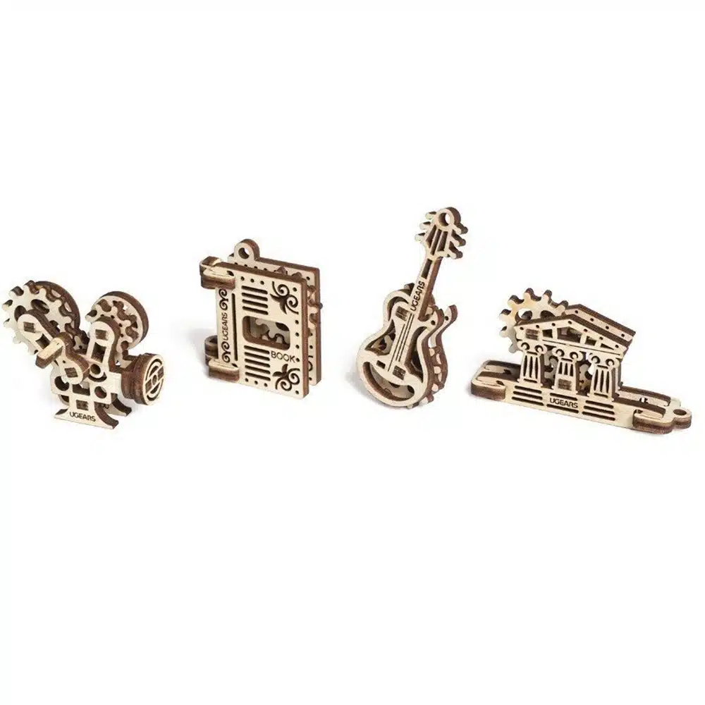 U-Fidget Creation est composé de 4 minis puzzles 3D mécaniques. Le Livre, la Caméra, la Guitare & le Parthénon. Facile à assembler et solide.