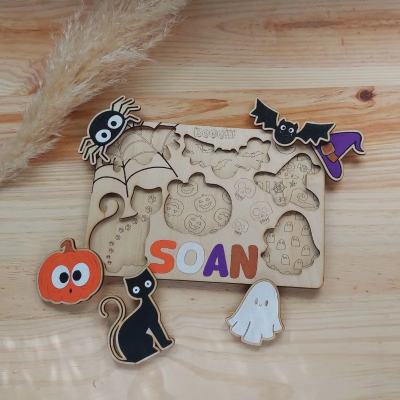 Plongez les petits dans l’univers d’Halloween avec ce puzzle en bois personnalisé. Fabriqué avec soin, ce puzzle présente des motifs amusants comme des citrouilles et des fantômes, parfaits pour divertir les enfants pendant la saison. Chaque pièce est découpée avec précision et peinte à la main pour offrir une expérience de jeu ludique et stimulante. Solide et durable, ce puzzle en bois est un excellent moyen d’occuper les plus jeunes tout en développant leur concentration et leur créativité. Un cadeau original et amusant pour rendre Halloween encore plus magique !