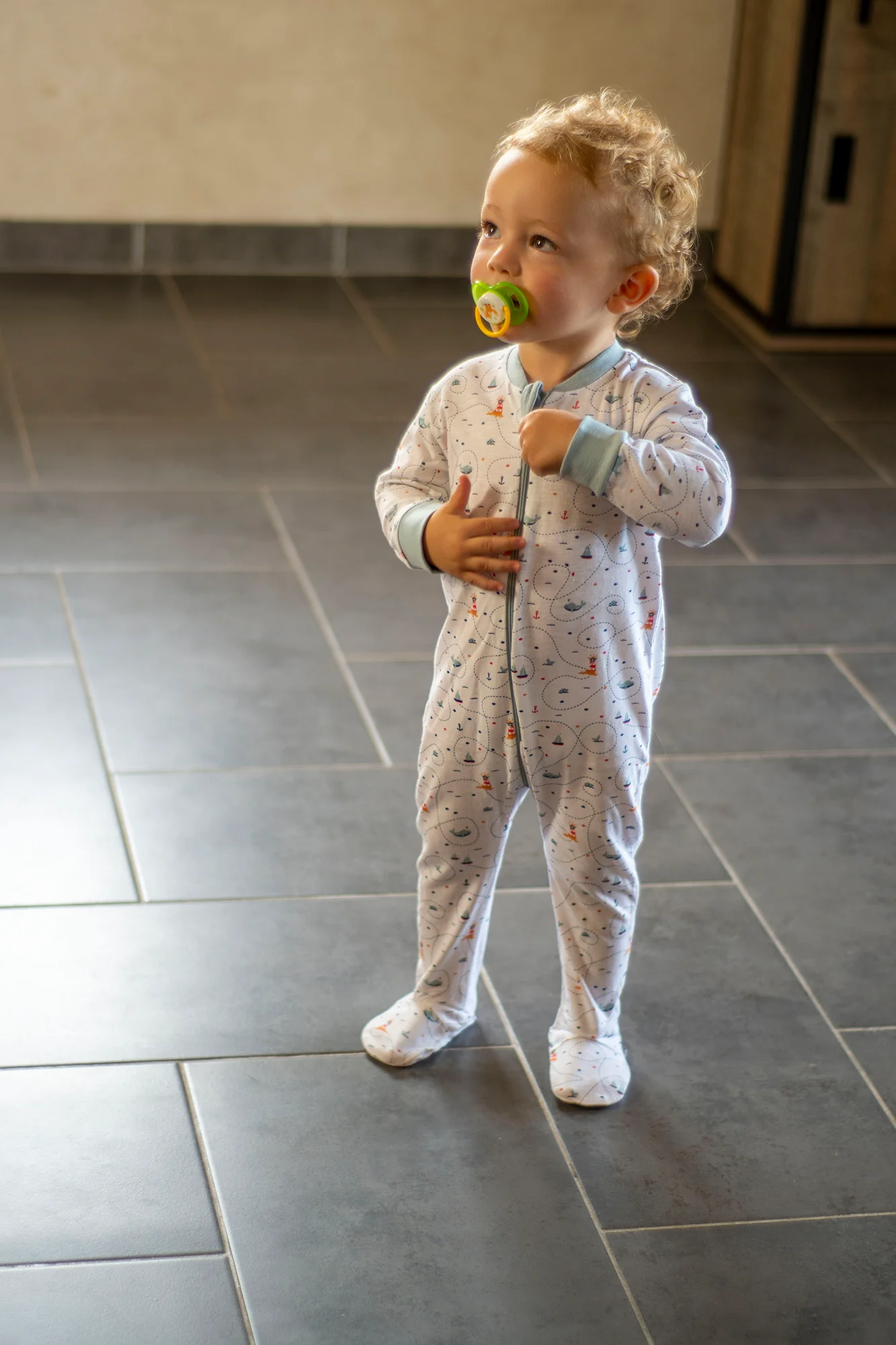 Ouverture zip, avec une protection anti-pincement au niveau du cou. Composition 100% coton bio.