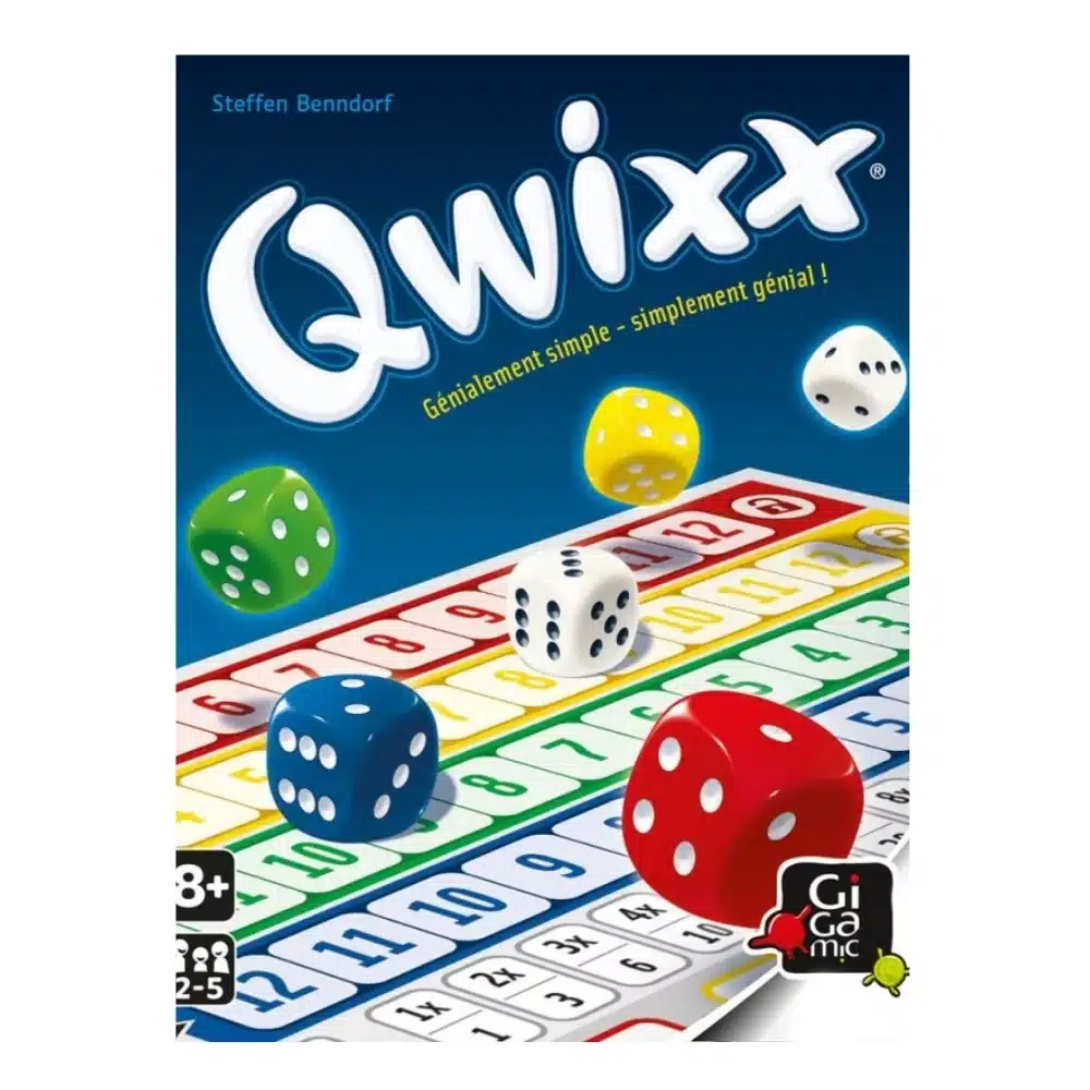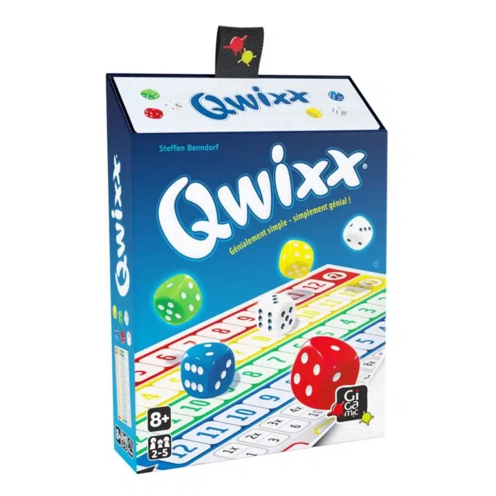 Qwixx édition Gigamic, un jeu de dès à partir de 8 ans. Cochez un maximum de cases ! De 2 à 5 joueurs, durée de la partie: 15 min.