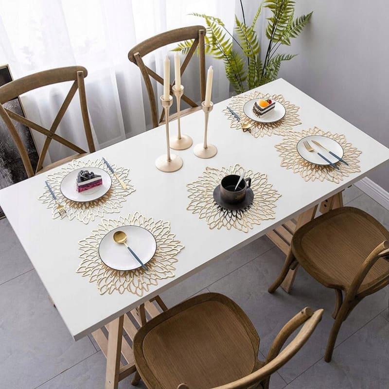 Vous êtes à la recherche d’accessoires pour décorer élégamment vos tablées et surprendre vos invités ? Pourquoi ne pas choisir FEUILLE D’ORIENT, le set de table en PVC ajouré argent ou doré aux couleurs de l’Orient ? En plus de son magnifique design, ce napperon protègera efficacement votre table à manger.