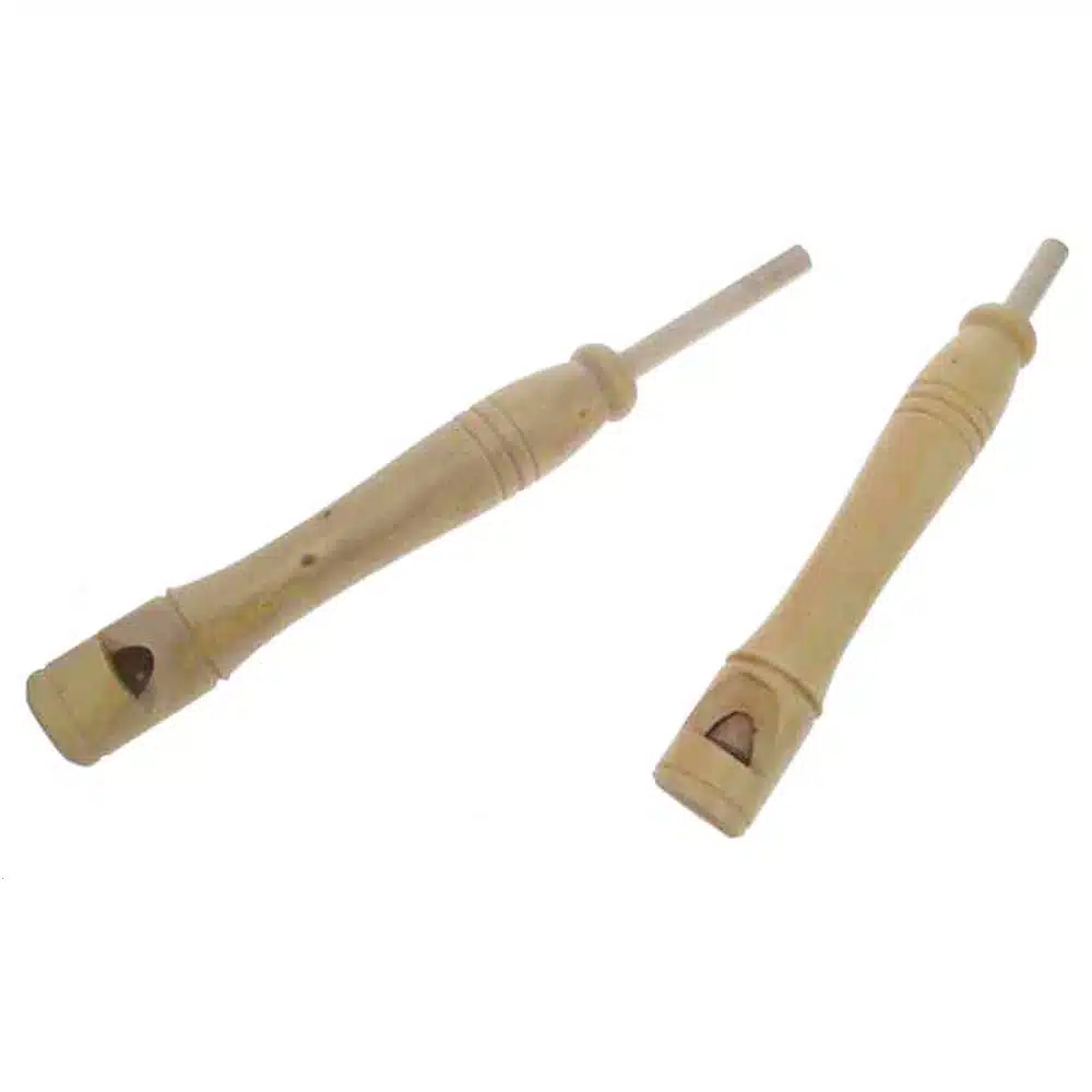 Sifflet à piston en buis, fabriqué par nos artisans du Jura en France. À partir de 3 ans.