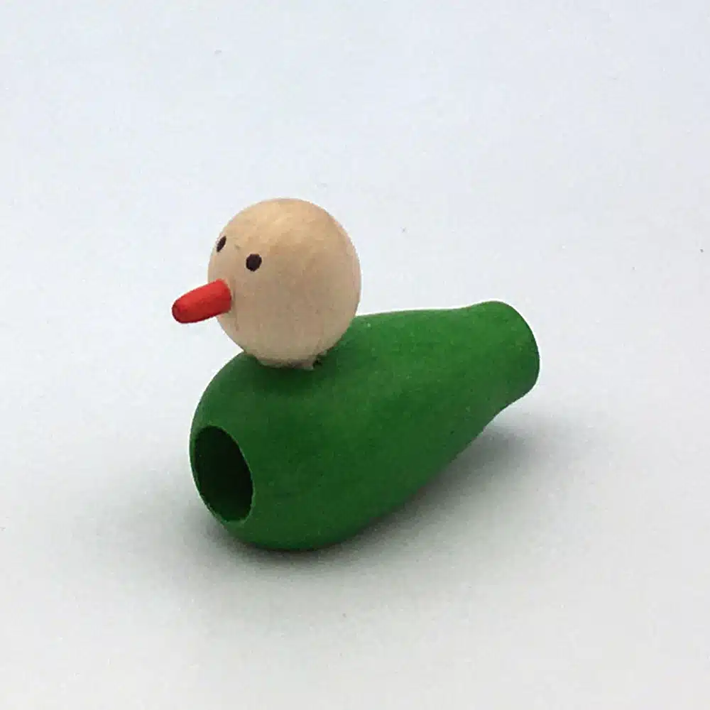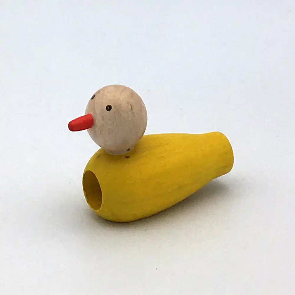 Sifflet en bois pour imiter le chant des oiseaux, fabriqué par nos artisans du Jura en France. À partir de 3 ans.