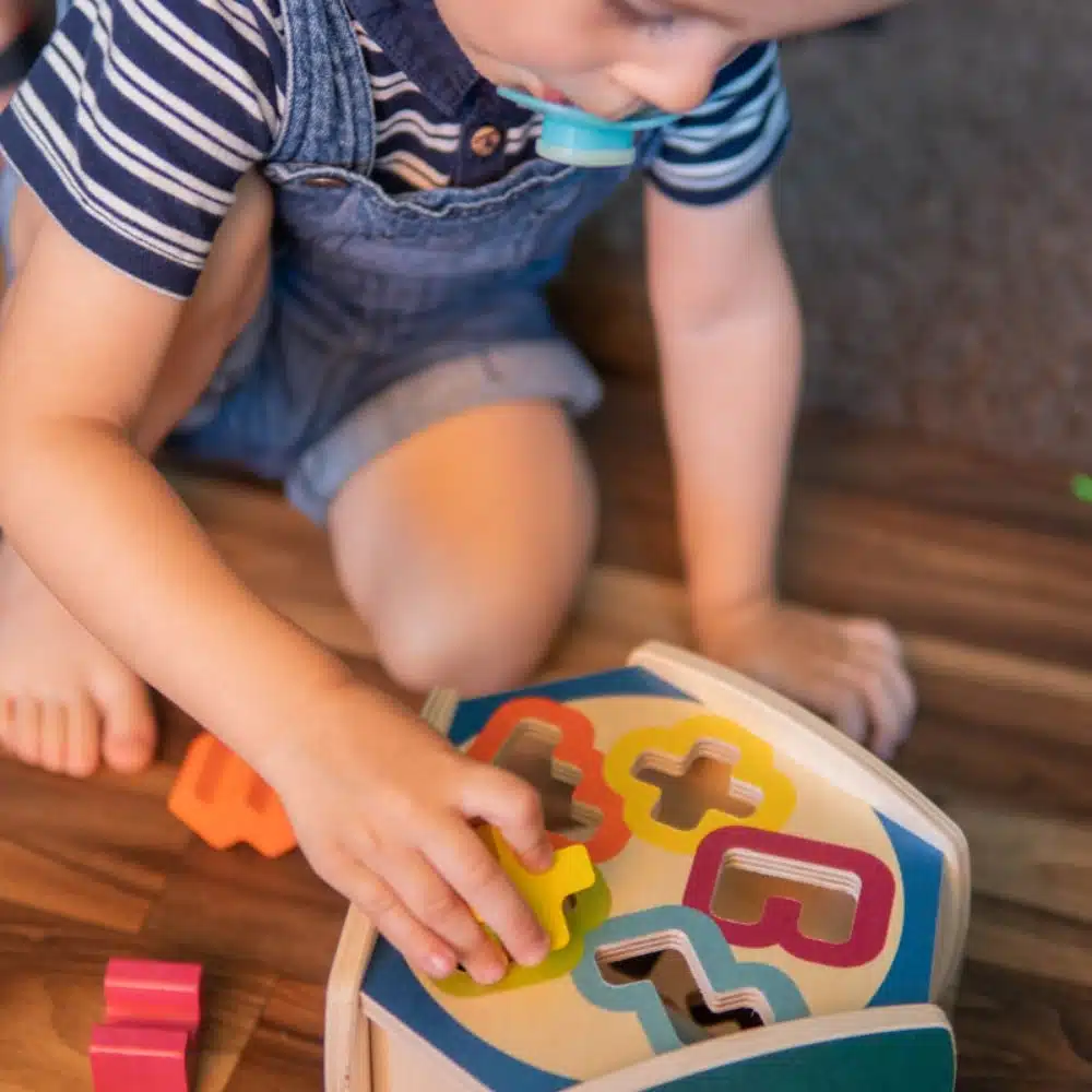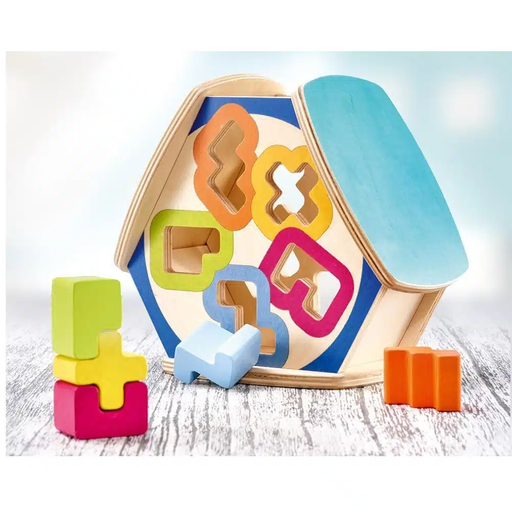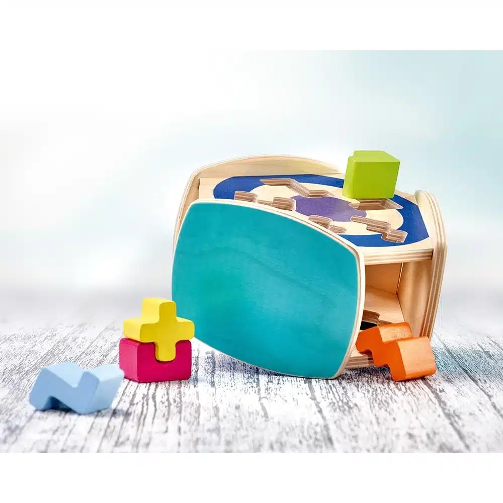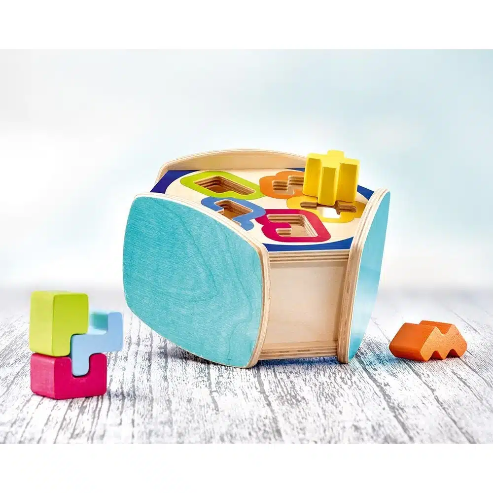 Sortino, la boîte à formes en bois de la marque Selecta, pour reconnaître les formes et les couleurs. Fabriquée en Allemagne, à partir de 24 mois.