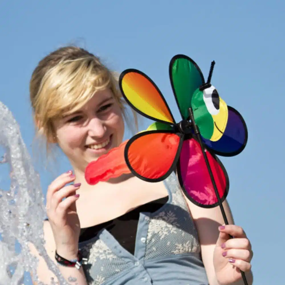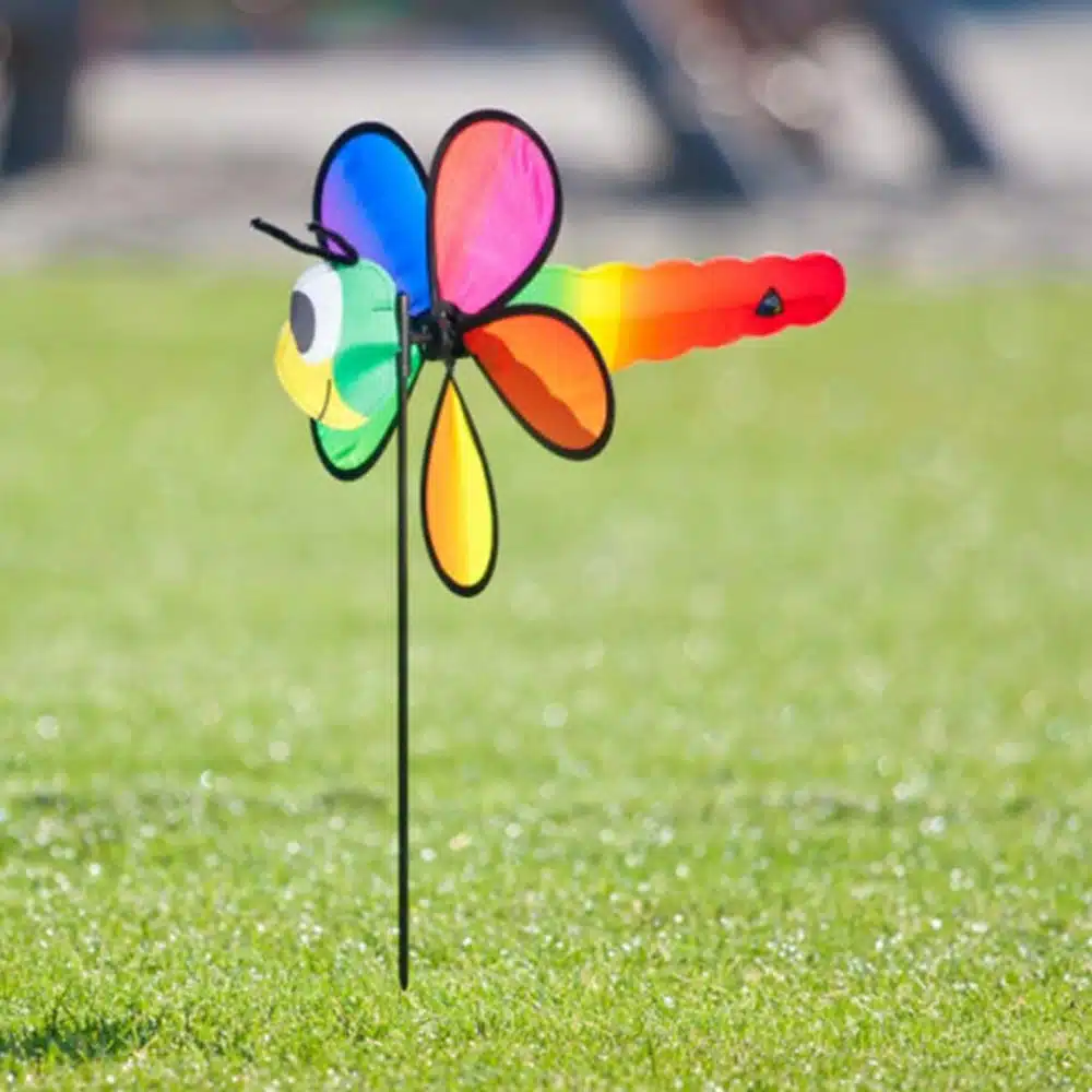 La girouette à planter « Spin Critters Libellule » est très solide, fabriquée en toile de cerf-volant et en carbone.