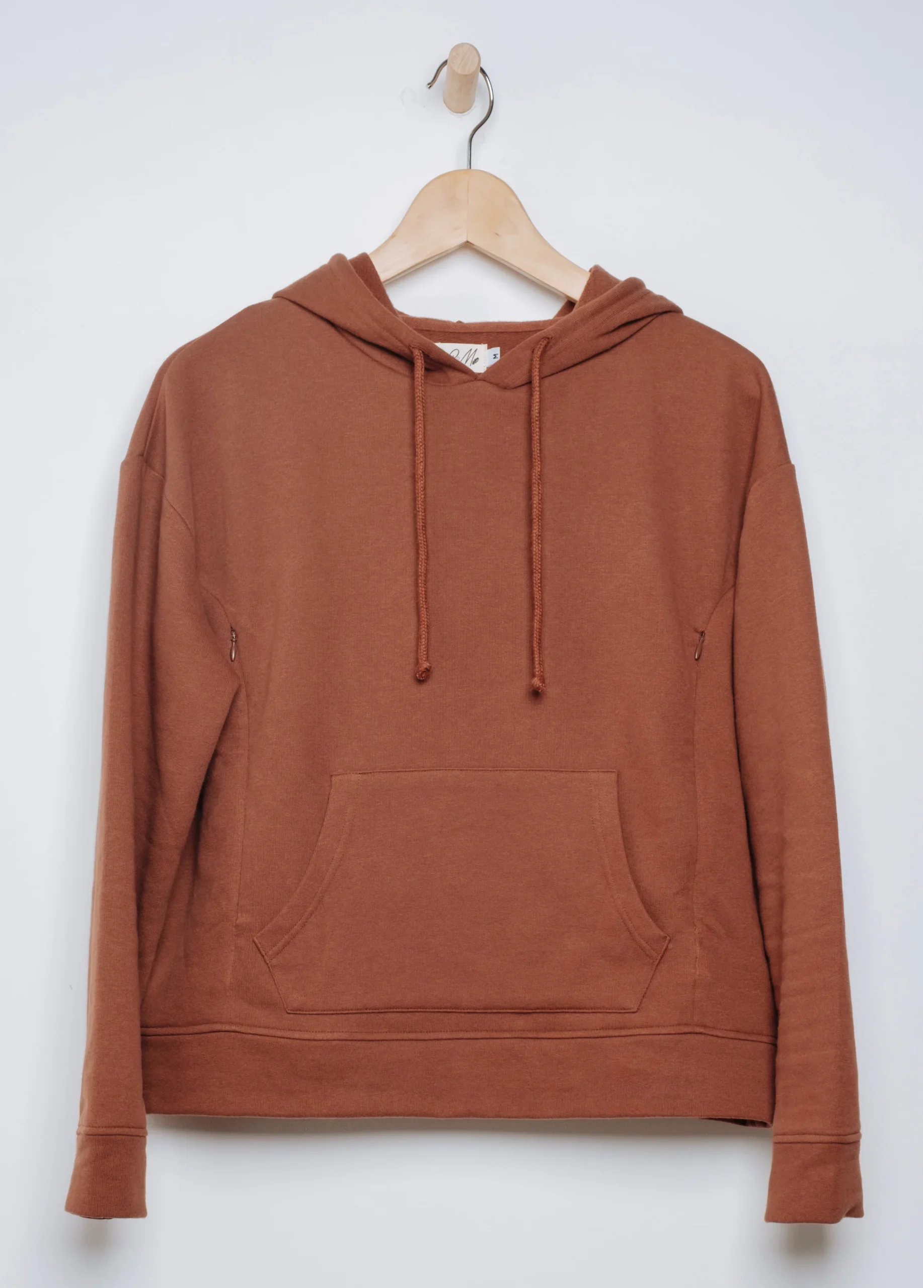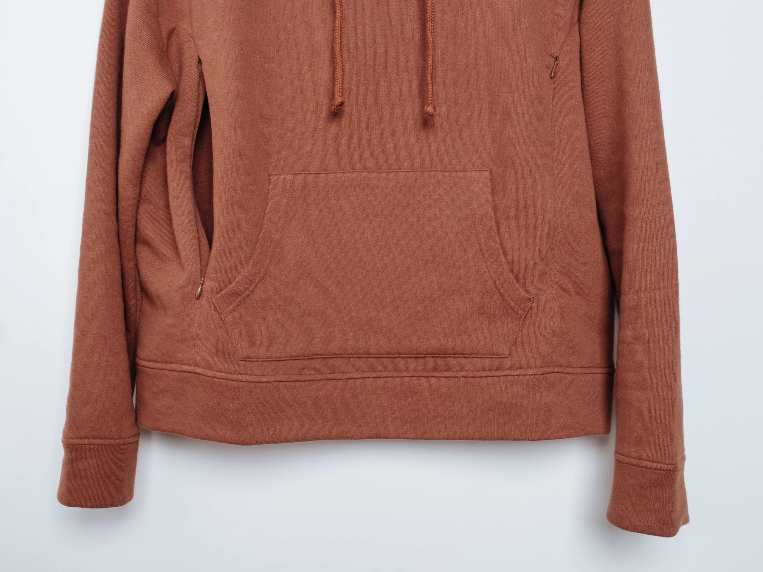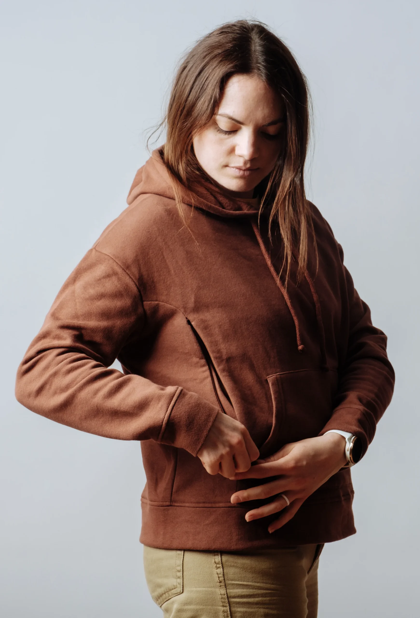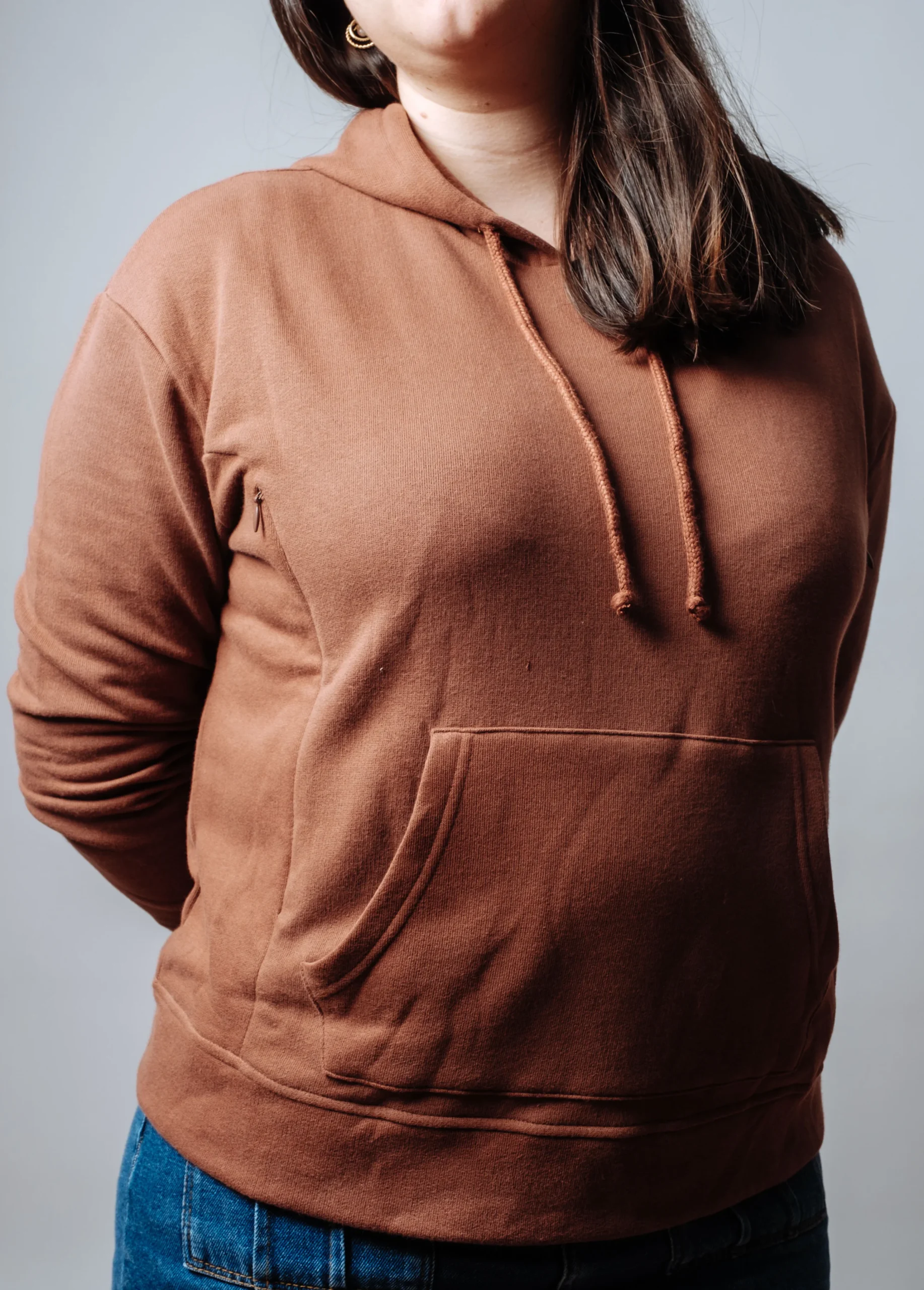 • Le pull d’allaitement « Cacao » a deux ouvertures zip verticales à l’extérieur de la poitrine pour faciliter l’allaitement.