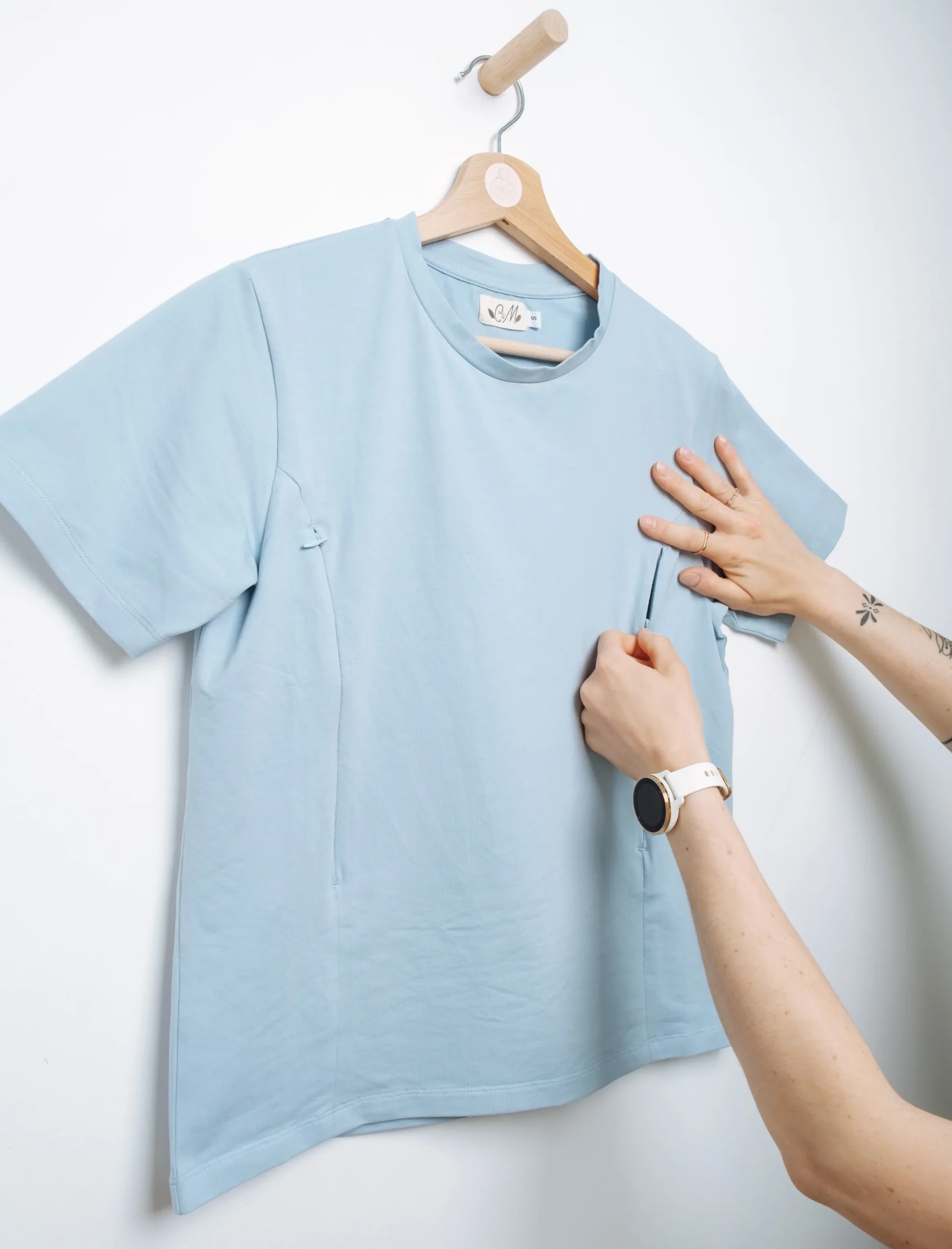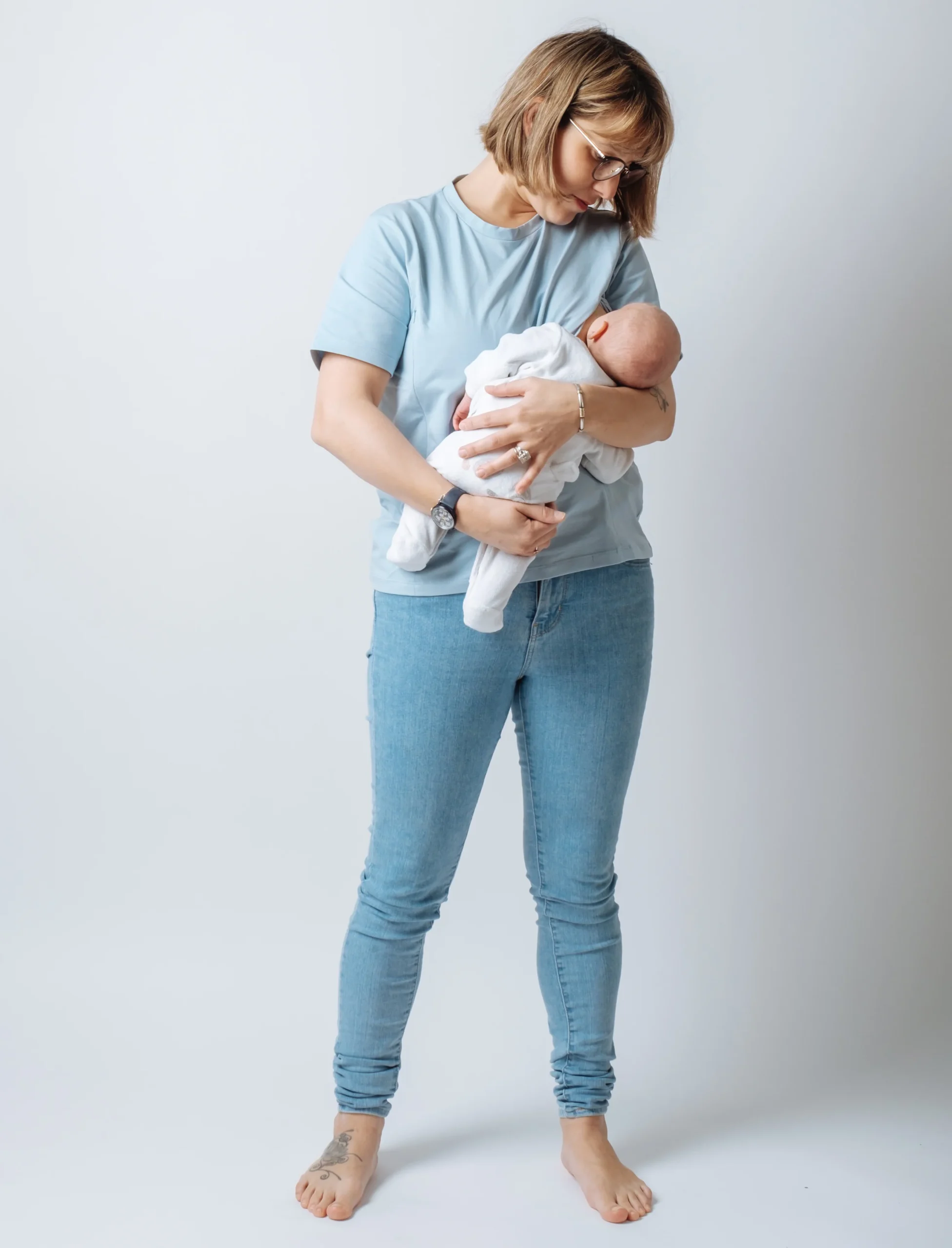 T-shirt d’allaitement Baby Blue T-shirt d’allaitement manches courtes et col rond Deux ouvertures zip verticales à l’extérieur de la poitrine pour faciliter l’allaitement Les fermetures s’ouvrent de haut en bas Couleur : Bleu pastel ✂️ Détails: Le tissu est assez épais, choisi pour la résistance des ouvertures fréquentes.Après lavage, le tissu à l’avantage de peu […]