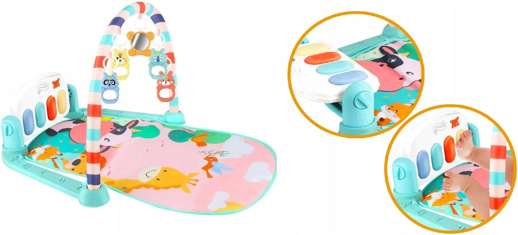 Il est spécialement conçu pour les nouveau-nés et plus, équipé d’une arche et de cinq jouets suspendus différents pour garder bébé occupé pendant des heures de jeu. Les jouets sont faciles à retirer et à nettoyer.