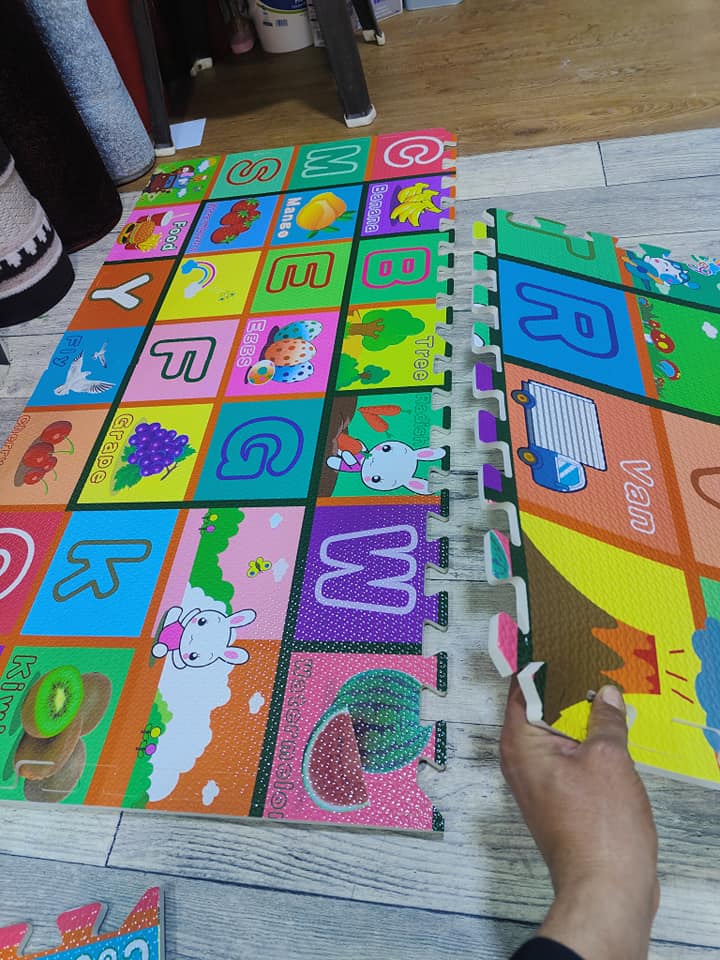 Le tapis se compose de 4 pièces de 60*60 cm chacune et comprend toutes les lettres de A à Z. Le jeu est extensible à l’infini, donc plus vous avez de pièces, plus vous pouvez créer un véritable paradis de jeu pour votre petit.
