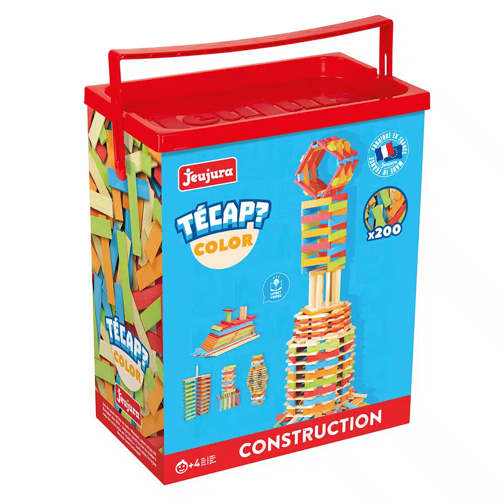 Técap? Color 200 pièces, jeu de construction en bois fabriqué en France par Jeujura. À partir de 4 ans.