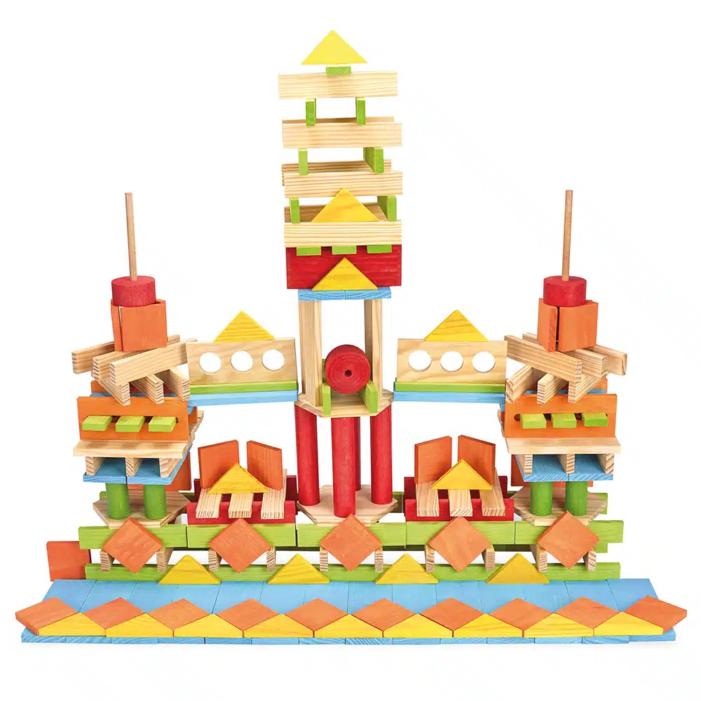 Jeu de construction et d’équilibre qui permet de laisser libre cours à la créativité et l’inventivité des enfants. Ils peuvent tout construire (maisons, tours, châteaux, ponts, véhicules…) en utilisant les modèles fournis ou leur propre imagination. Ce jeu de construction favorise la dextérité, la maîtrise du geste de l’enfant, son adresse et son habilité.